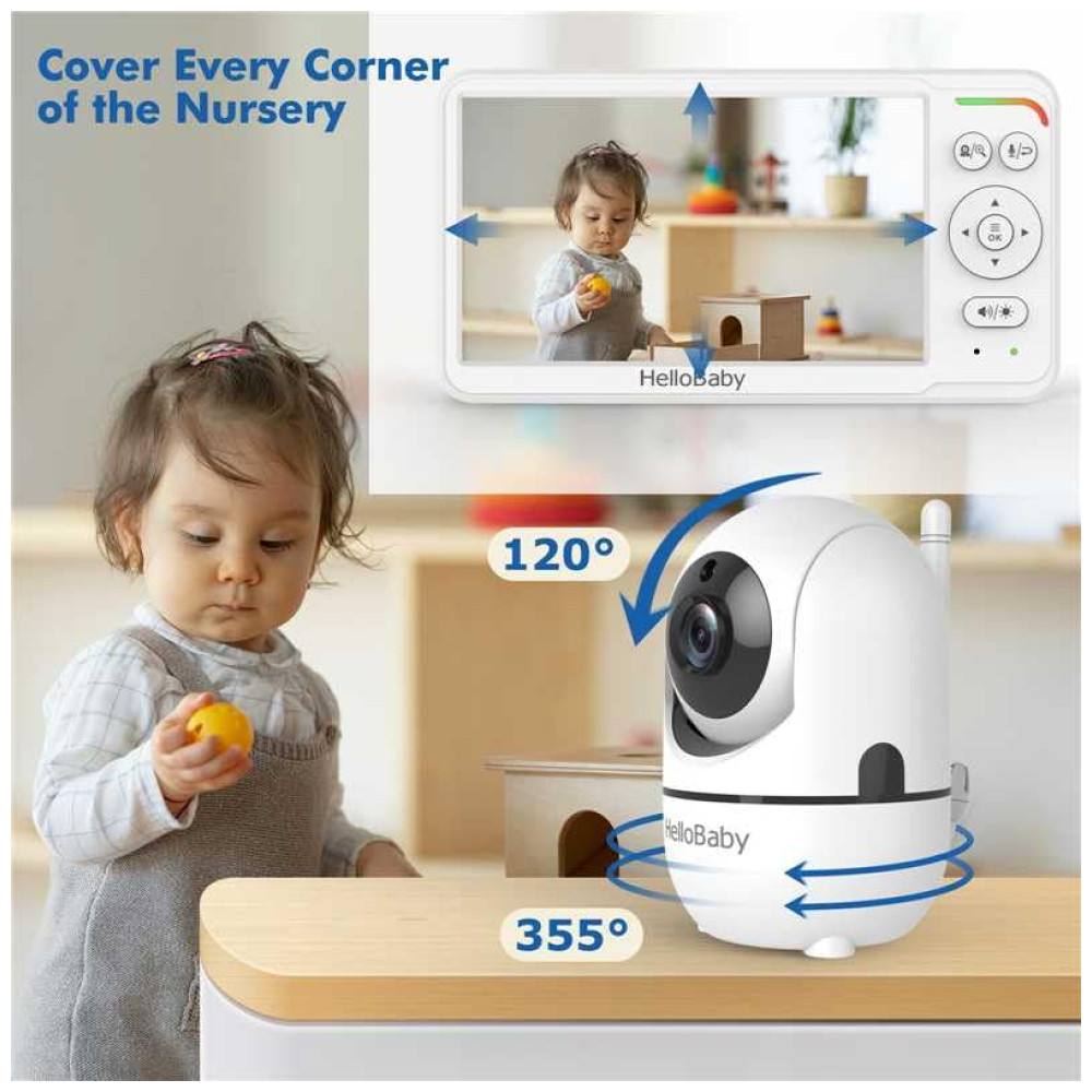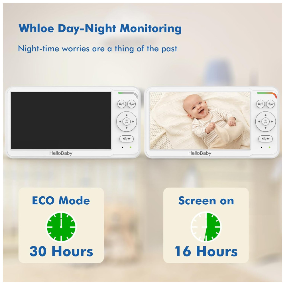 O Monitor de Bebê HelloBaby apresenta a primeira tela IPS do mundo! Desenvolvido para reduzir a fadiga visual, proporciona conforto inigualável de qualquer ângulo. Com uma bateria de longa duração de até 30 horas, você terá tranquilidade a noite toda. A visão noturna infravermelha avançada permite observar seu bebê mesmo no escuro total. Controle remoto de panorâmica e inclinação de 355 graus, lente grande angular, áudio bidirecional, modo ECO, alerta de temperatura do ambiente e muito mais. Este monitor não requer WiFi, garantindo uma conexão segura. A qualidade da imagem e do som, juntamente com os recursos inteligentes, tornam o Monitor de Bebê HelloBaby a escolha perfeita para pais e cuidadores preocupados.
