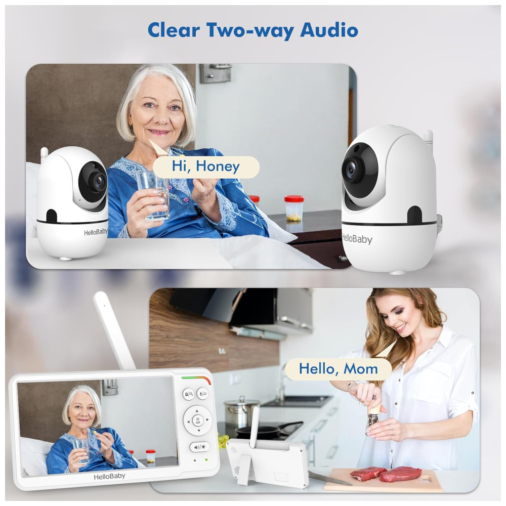 Monitor de Bebê HelloBaby com Tela IPS – Visão Noturna Bateria de 30 Horas Controle Remoto de Câmera Áudio Bidirecional