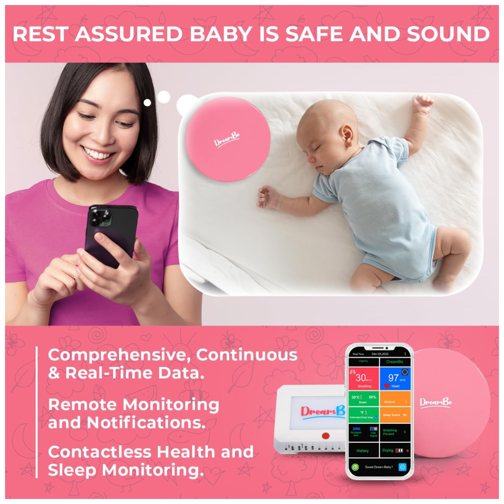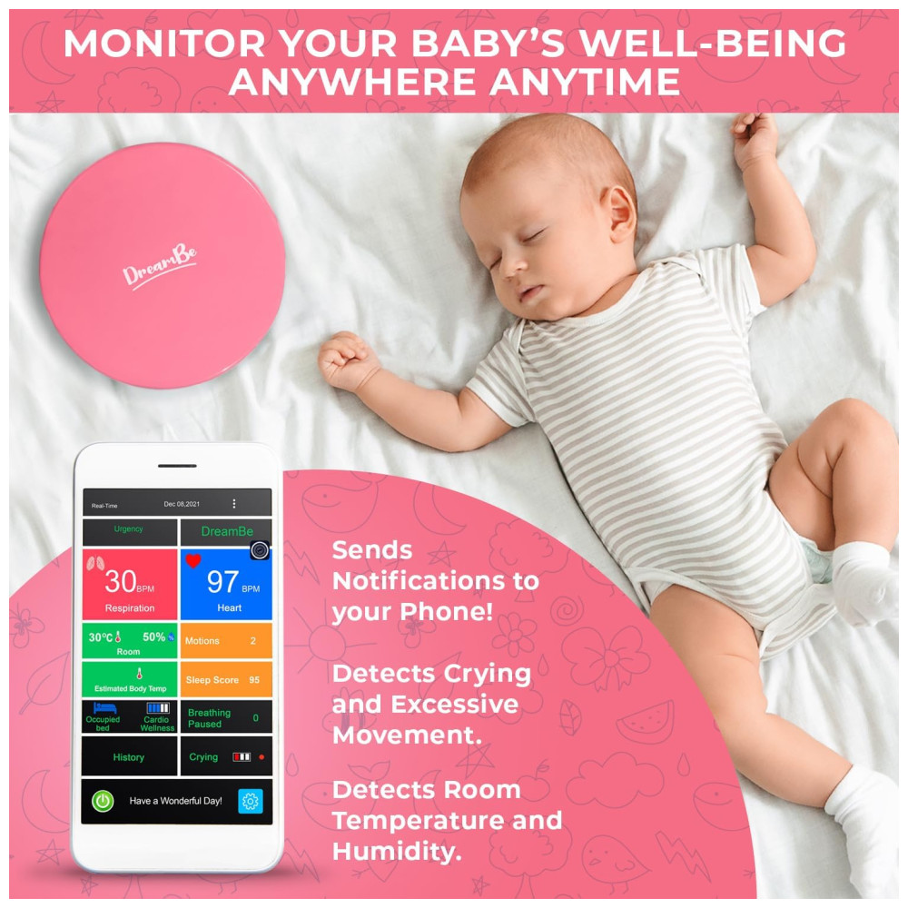 Monitor de Respiração de Bebê Inteligente sem Contato WiFi com Notificações de Choro Onsky DreamBe Rosa