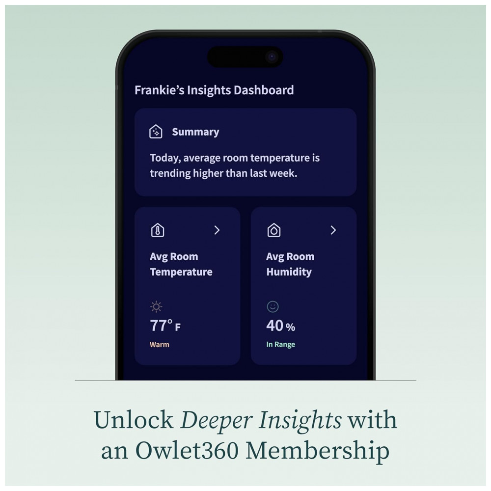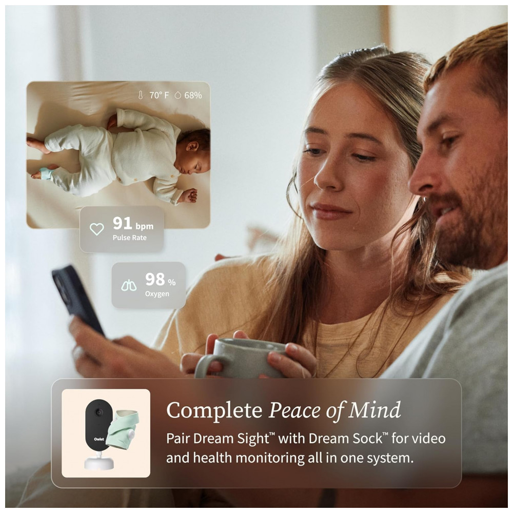 O Monitor de Sono Owlet Dream é um sensor inteligente Dream Sock colocado no dedo do pé do bebê, que mede saturação de oxigênio, frequência cardíaca, temperatura ambiente e padrões de sono via aplicativo WiFi. Envia alertas personalizáveis em tempo real para smartphones sobre métricas vitais.