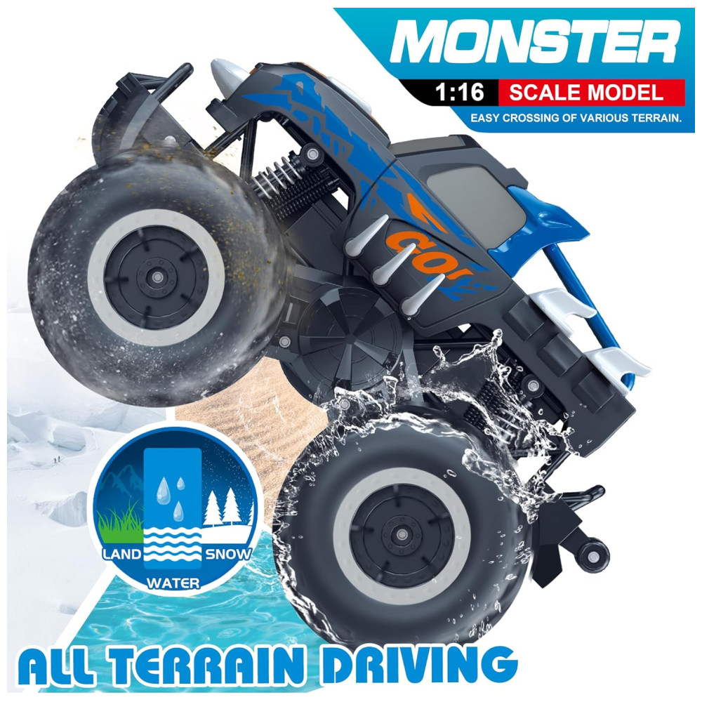 Monstro Truck Pickup 116 à Prova d’Água – Carro RC Anfíbio Controle Remoto – Todoterreno 4WD para Crianças de 4 a 12 AnosThreeking