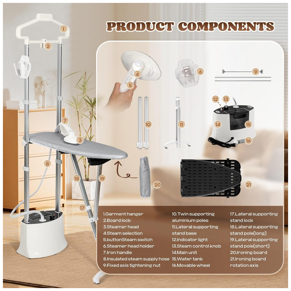 Moongiantgo SteamerPassadeira Vaporizador Comercial Vertical para Roupas com Tábua de Passar Dobrável