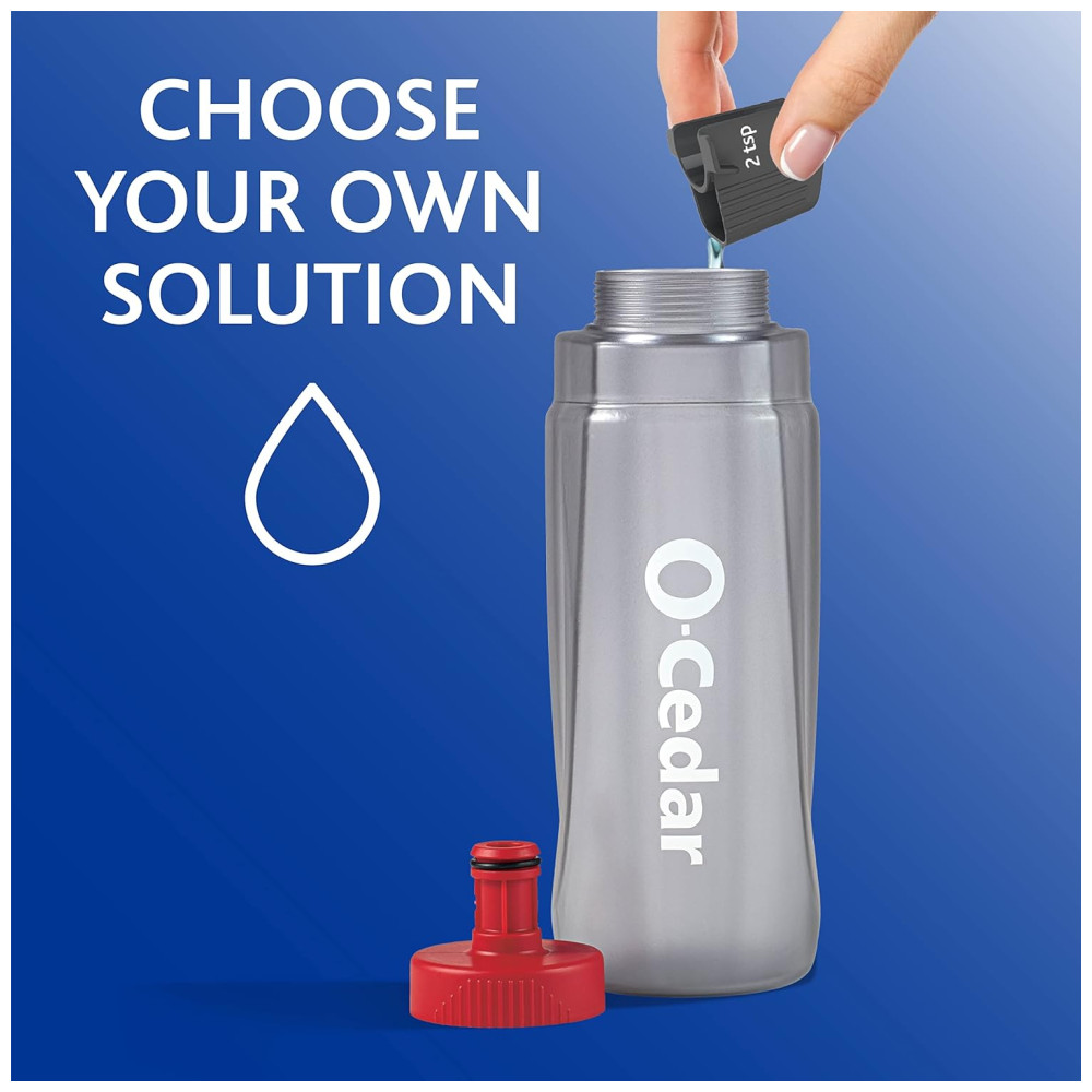 ESCOLHA SUA PRÓPRIA SOLUÇÃO Basta encher a garrafa com água e adicionar 2 colheres pequenas de sua solução de limpeza favorita vendida separadamente e você está pronto para dar brilho ao seu piso