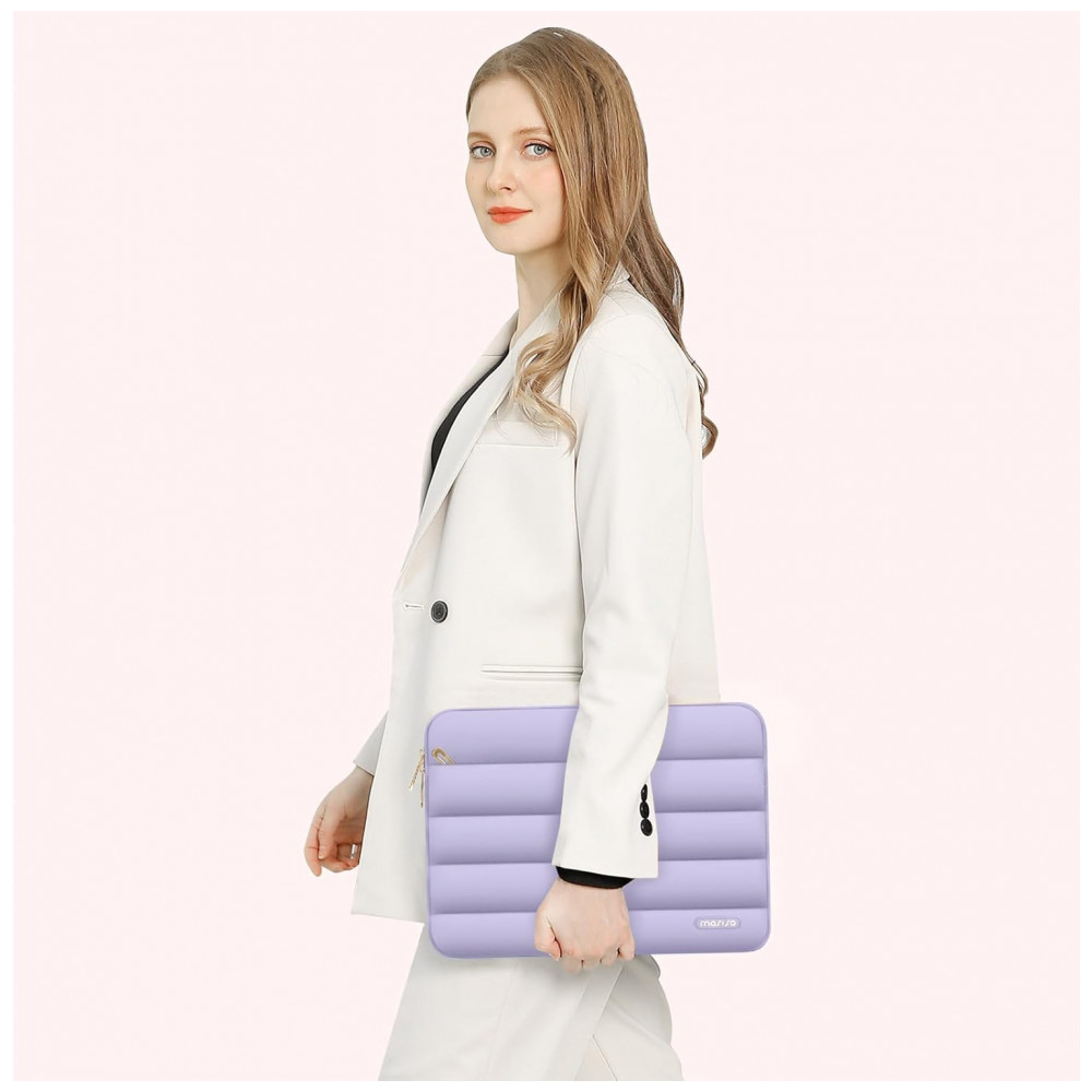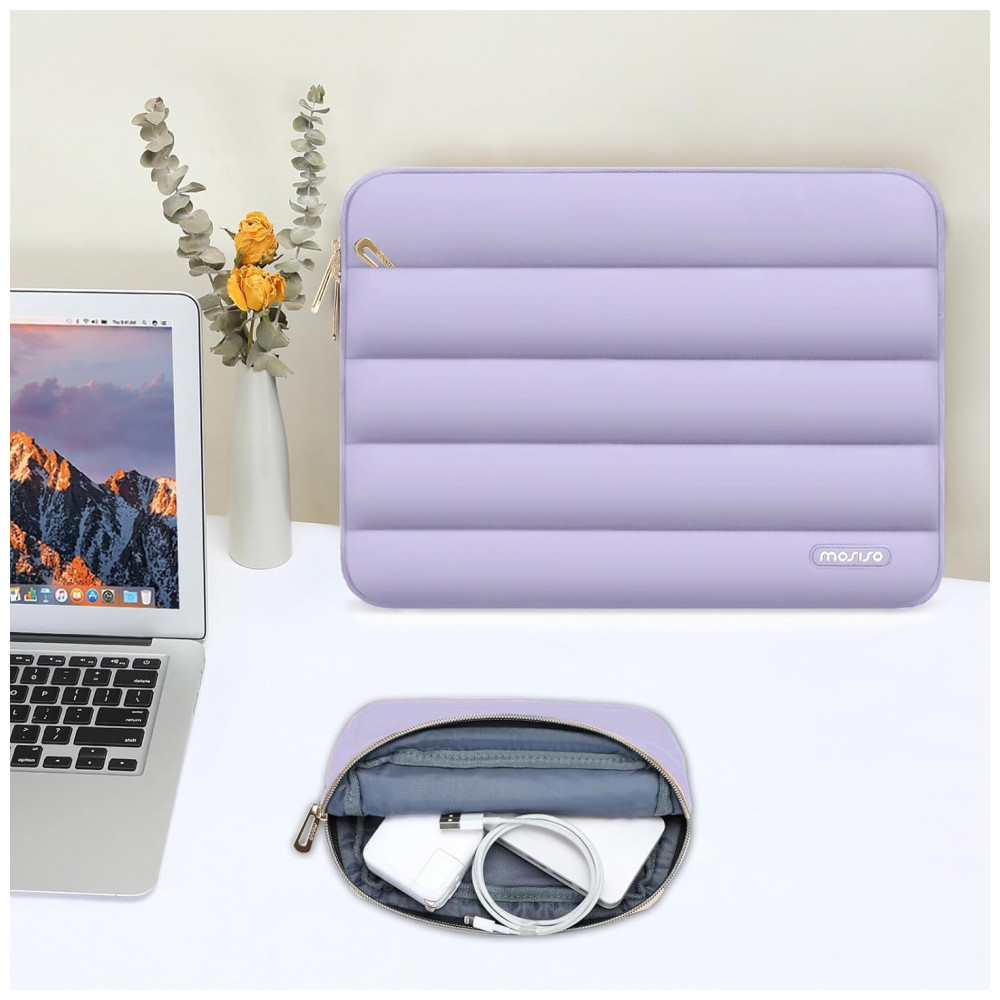 A MOSISO 13.3” Purple é uma sleeve acolchoada que combina proteção, praticidade e estilo, ideal para laptops de 13 a 13,3 polegadas. Fabricada em poliéster macio tipo puffy, possui uma camada interna de espuma e forro felpudo, garantindo segurança contra impactos, choques e arranhões acidentais. Seu bolso horizontal frontal de 11,61 x 7,48 polegadas é perfeito para guardar cabos, carregadores e documentos, enquanto o estojo pequeno incluso (7,87 x 4,33 x 1,38 polegadas) permite organizar acessórios como mouse, fones de ouvido ou pequenos dispositivos, mantendo a harmonia de cores com a bolsa principal.