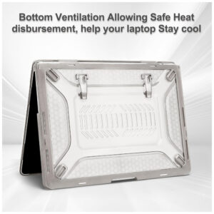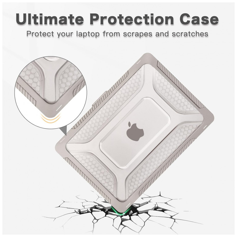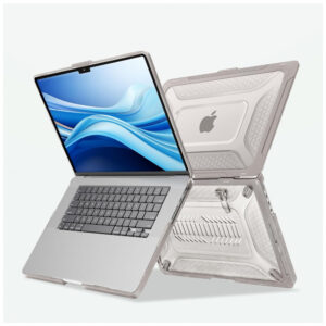 O bumper em TPU com design Honeycomb absorve impactos, enquanto o suporte dobrável integrado proporciona um ângulo ergonômico ideal para visualização e digitação. Totalmente ventilada, a capa permite a dissipação de calor e acesso completo a todos os botões, portas e ao Touch ID. Fácil de colocar e remover, sem risco de danificar o dispositivo.