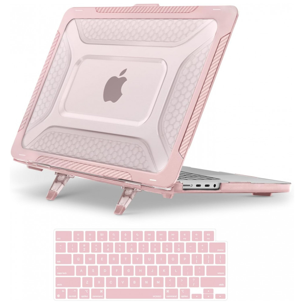 MOSISO Capa Rígida Honeycomb para MacBook Pro 16″ 2021-2025 M1/M2/M3/M4 Pro/Max com Suporte Dobrável e Capa de Teclado Rosa