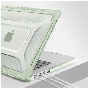 A capa MOSISO oferece proteção completa para MacBook Pro 16″ de 2021 a 2025, combinando durabilidade e funcionalidade. Construída em policarbonato rígido com bordas em TPU e design em favo de mel, absorve impactos, protege contra quedas, arranhões e danos acidentais, garantindo segurança máxima. O design sem recortes mantém o logotipo visível, e a ventilação integrada permite que o laptop se mantenha resfriado durante o uso.