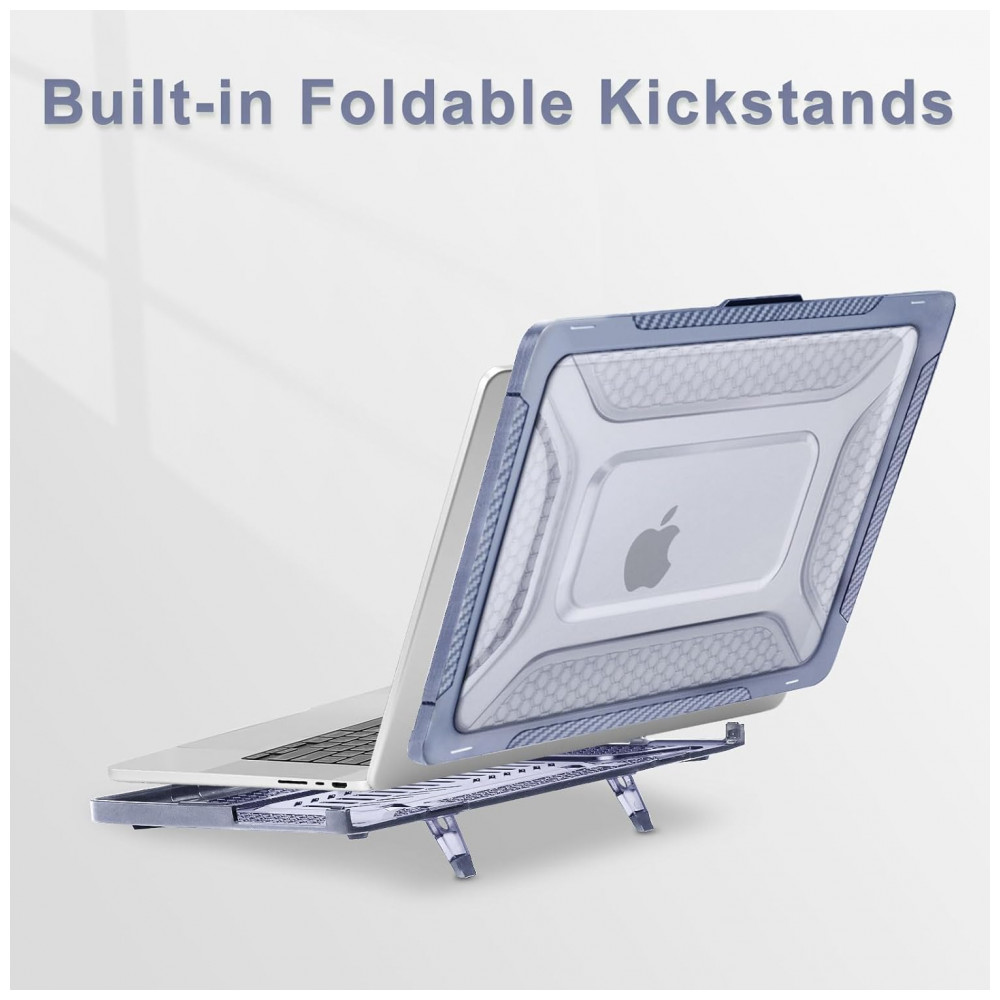 A capa MOSISO 16″ combina proteção robusta e design funcional para MacBook Pro. Seu corpo em policarbonato com bordas de TPU em formato honeycomb absorve impactos e protege contra quedas, arranhões e marcas do uso diário. O design inclui kickstands dobráveis que oferecem um ângulo ergonômico de visualização e digitação, proporcionando maior conforto durante o trabalho ou estudo.