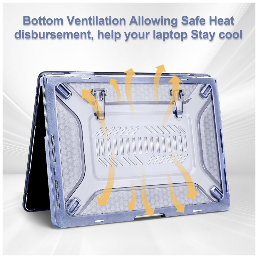 O case é totalmente ventilado para dissipação de calor e permite acesso completo a todas as portas e recursos do laptop. Removível e fácil de aplicar, não apresenta risco ao dispositivo. Acompanha capa de teclado para proteger contra derramamentos e poeira, mantendo o MacBook seguro e funcional. Ideal para uso diário, escritório, viagens ou estudos.