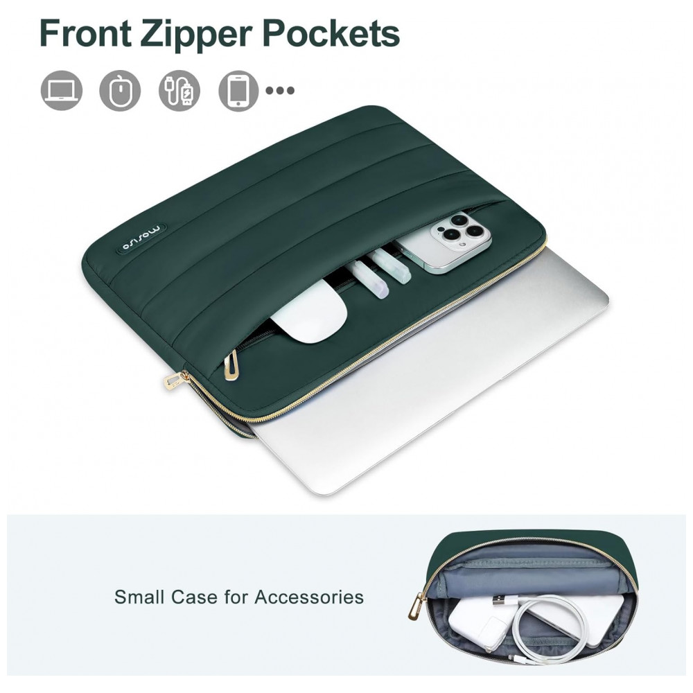 MOSISO Estojo Puffy para Laptop 13-133″ Compatível com MacBook Air/Pro 13-14 HP Dell ASUS Lenovo Bolsa Horizontal com Estojo Pequeno Verde Pavão