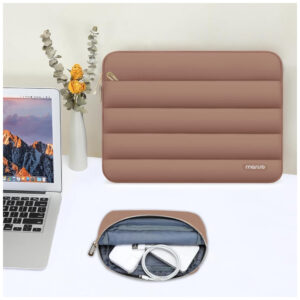 A capa MOSISO 13-13.3″ oferece proteção sofisticada e leve para o seu laptop. Confeccionada em poliéster acolchoado de toque suave, com camada interna de espuma e forro de fleece, garante absorção de impactos e previne arranhões acidentais. Acompanha uma pequena bolsa combinando, ideal para armazenar mouse, fones de ouvido ou acessórios, mantendo seu kit completo e organizado.