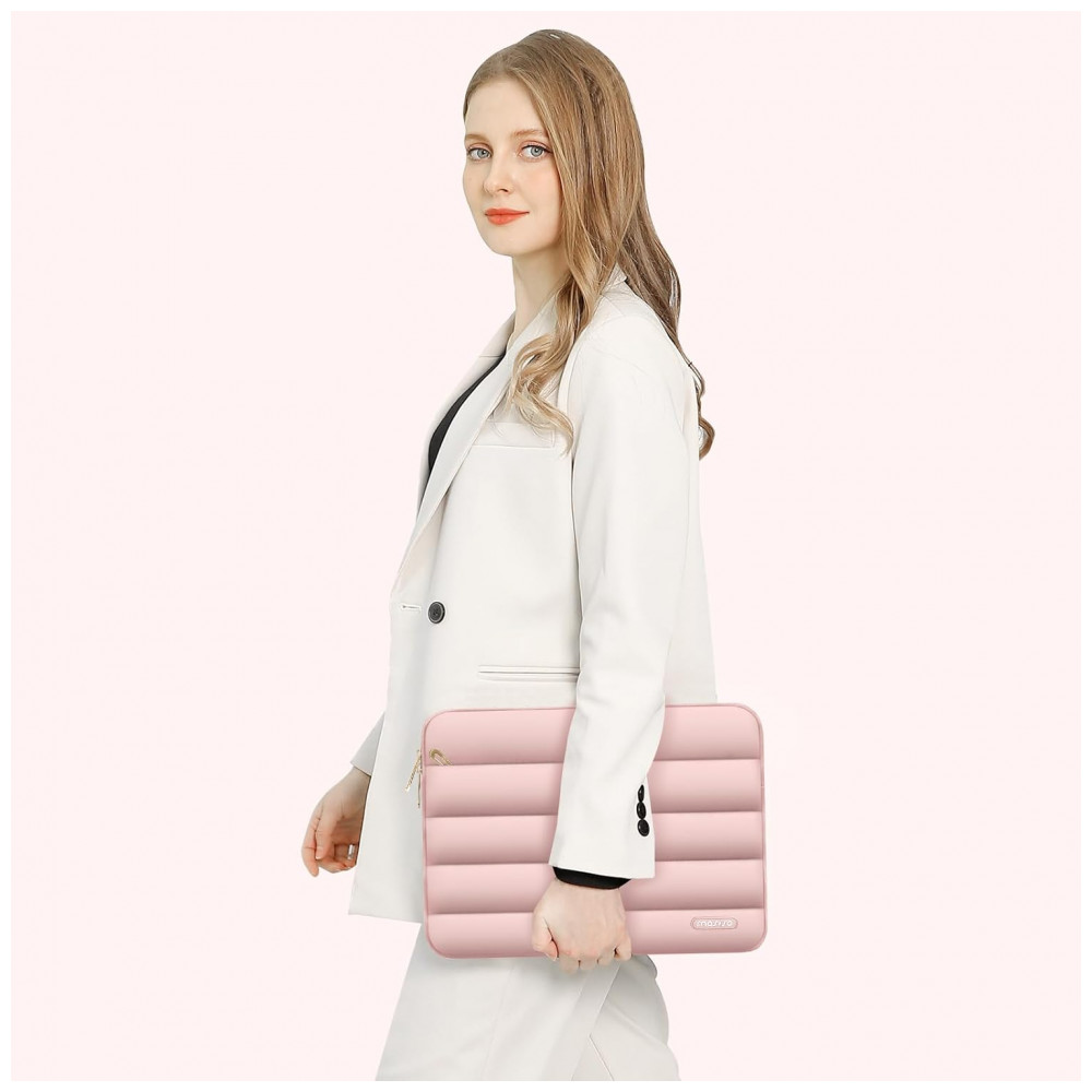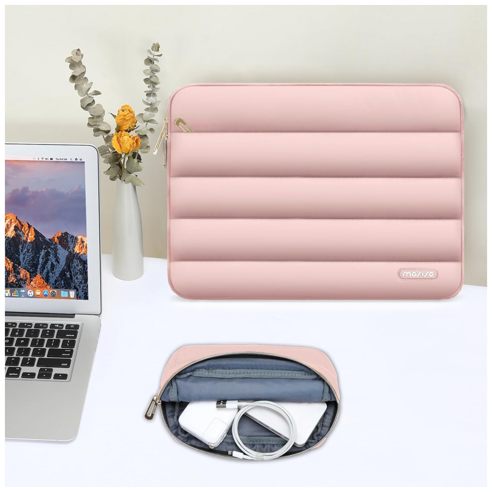MOSISO Sleeve 15-15.6″ para Laptop 16″ Compatível com MacBook Pro 16 HP Dell ASUS Acer Lenovo Bolsa de Poliéster com Estojo Pequeno Rosa