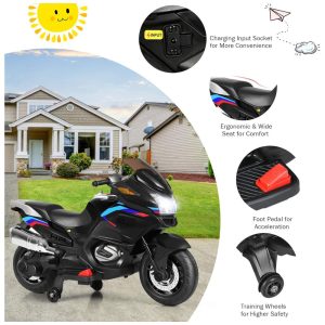 Moto Elétrica Infantil a Bateria 12V com Rodas de Treinamento e Luz LED HONEY JOY Preta
