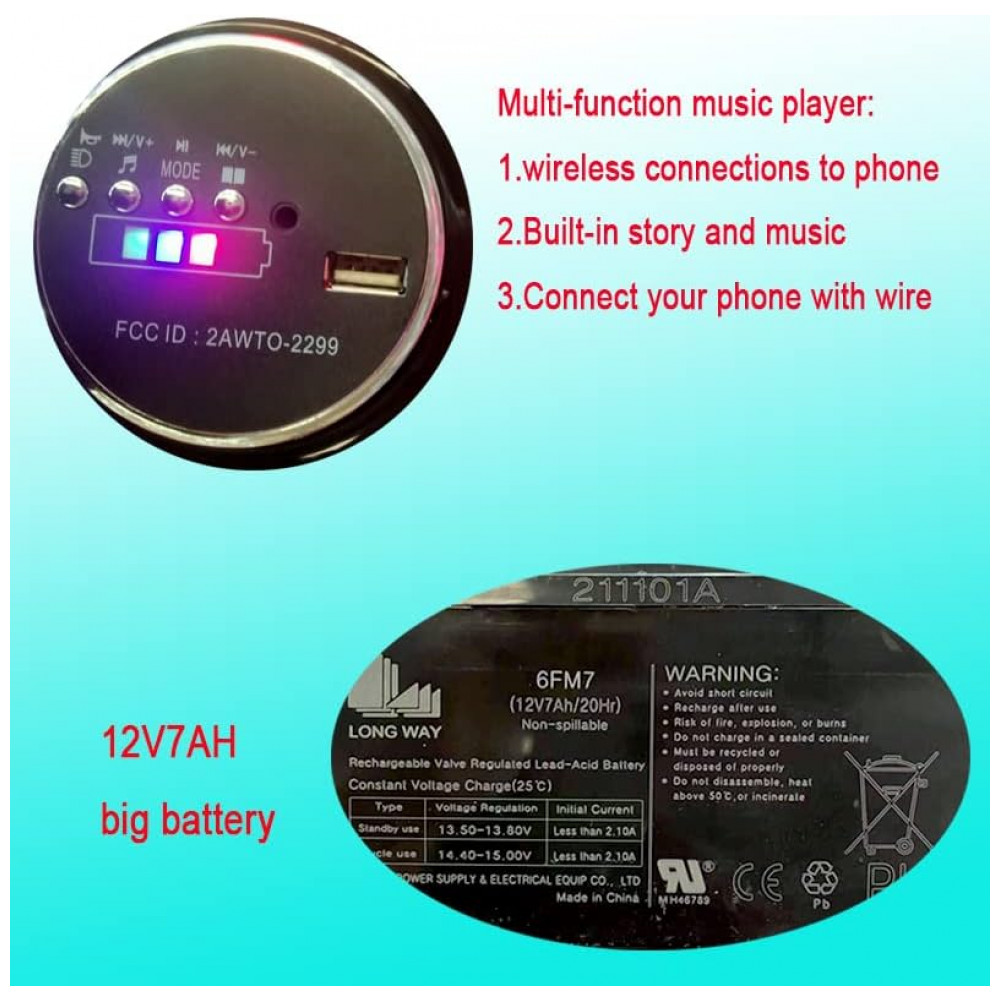 Função de Música: Reproduz música através de porta Aux, porta USB e slot para cartão TF.
