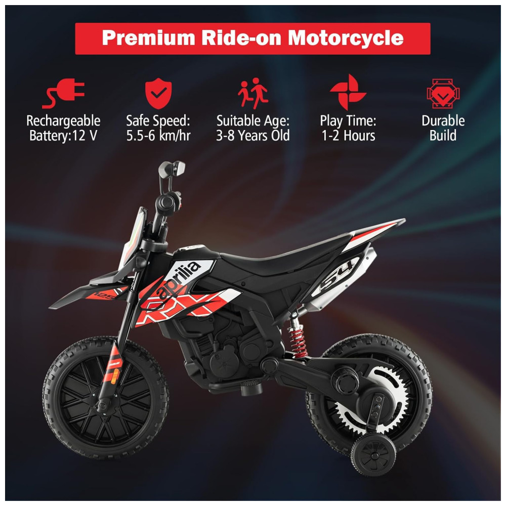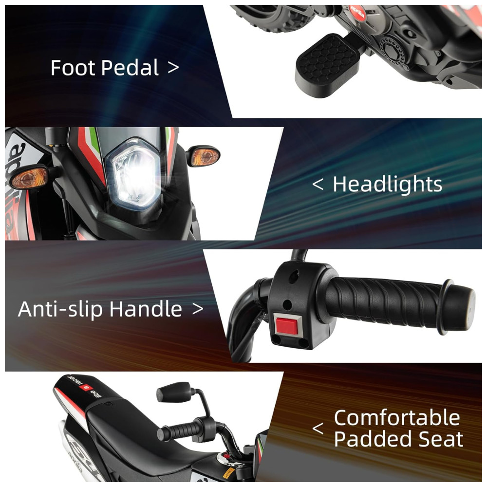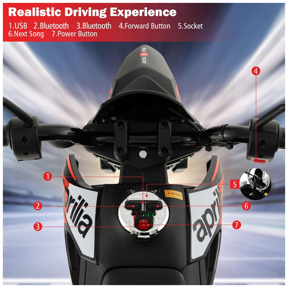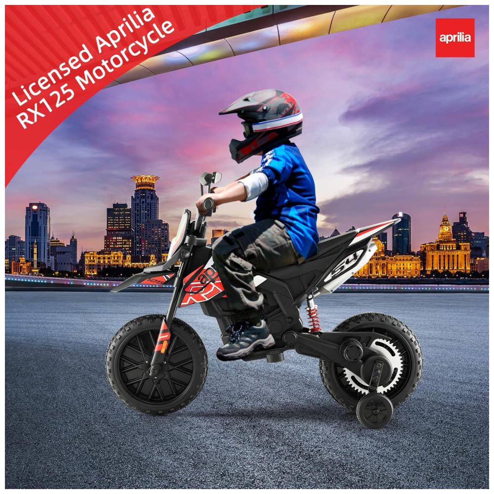 Com todos esses recursos, a motocicleta infantil Aprilia RX125 licenciada pela INFANS é uma escolha segura e divertida para crianças que desejam uma experiência de pilotagem emocionante