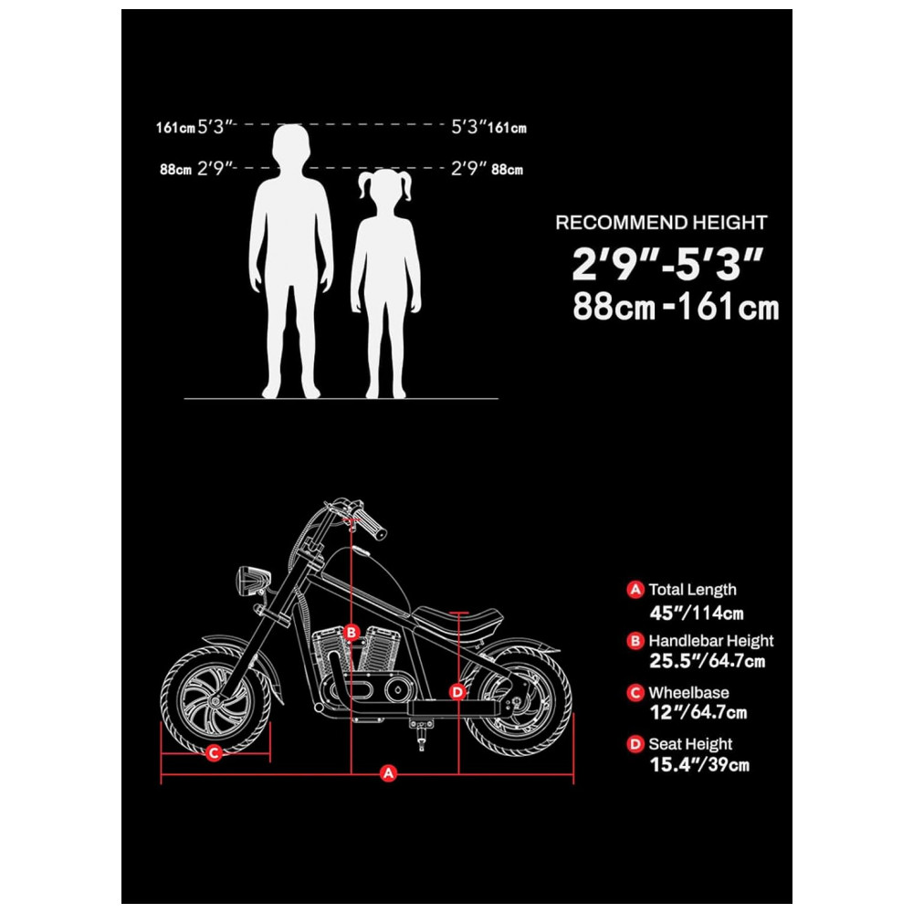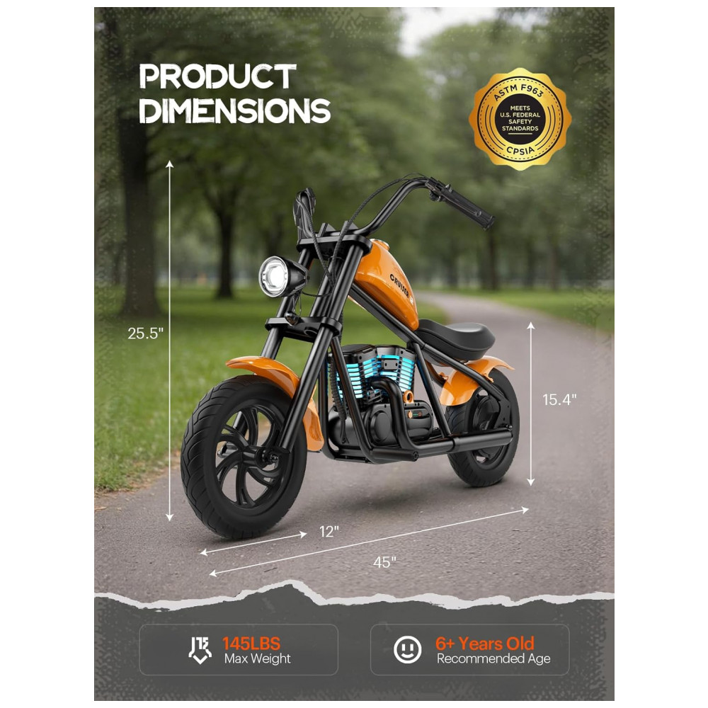 Navegue com a batida das batidas Bluetooth: A moto elétrica infantil CHALLENGER 12 Plus vem equipada com um alto falante Bluetooth integrado, permitindo que os jovens pilotos tomem suas faixas favoritas em qualquer lugar. Quer estejam dentro ou fora, as crianças podem curtir músicas nítidas, adicionando uma camada extra de emoção para sua jornada