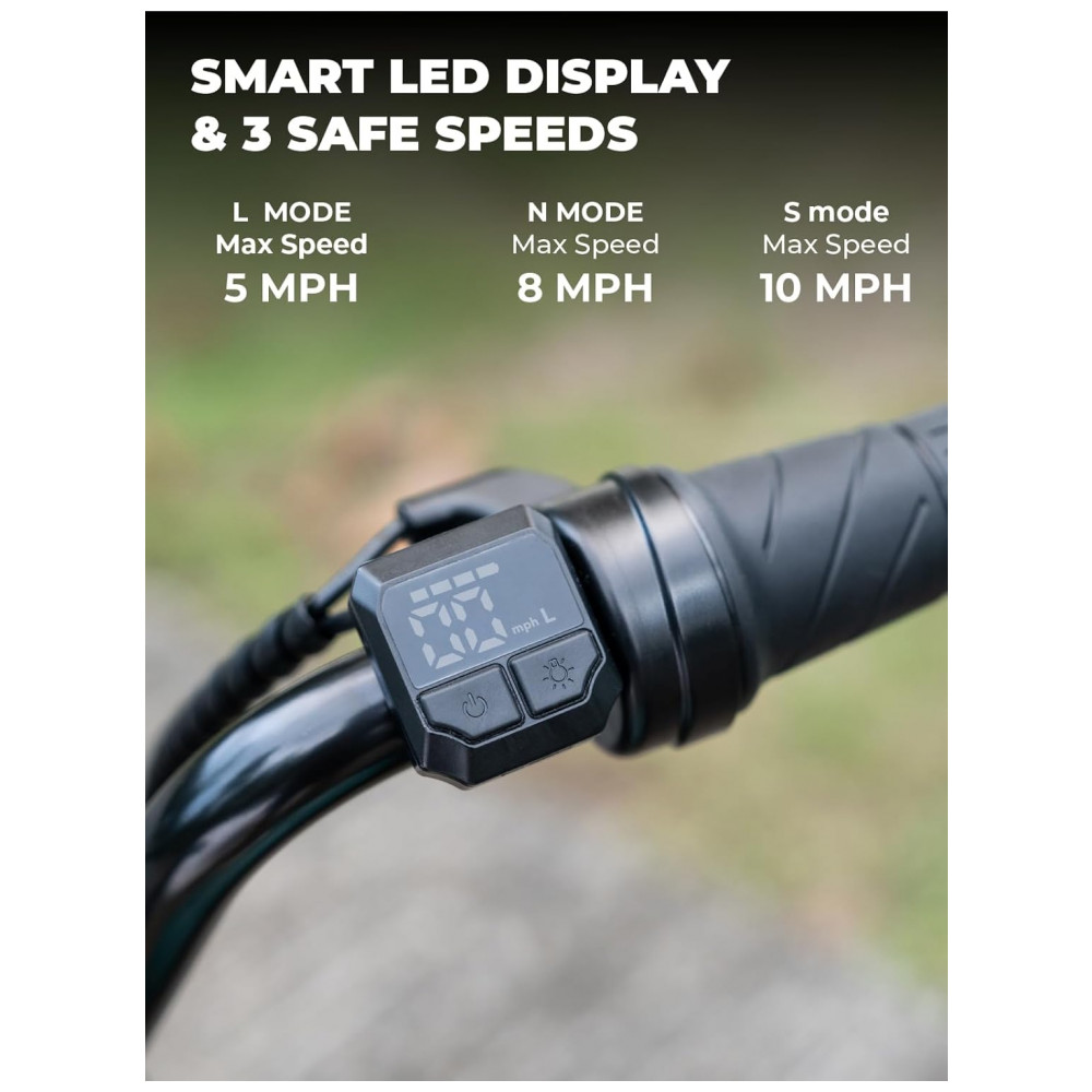 Segurança em primeiro lugar: Equipado com freio no cubo traseiro e capacidade máxima em subidas de 10.