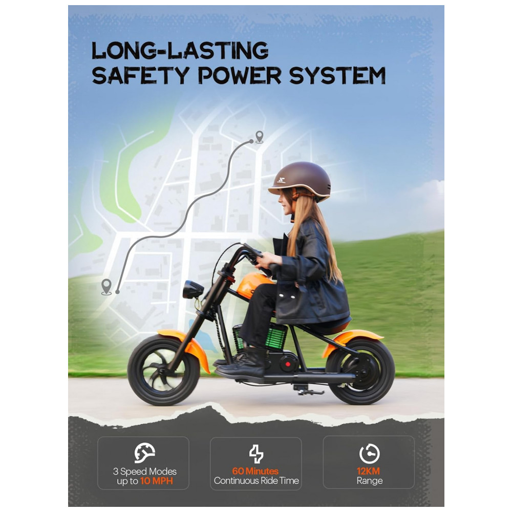 Moto Elétrica Infantil a Bateria 24V 160W com 3 Velocidades Atinge até 16 KM H HYPER GOGO Laranja