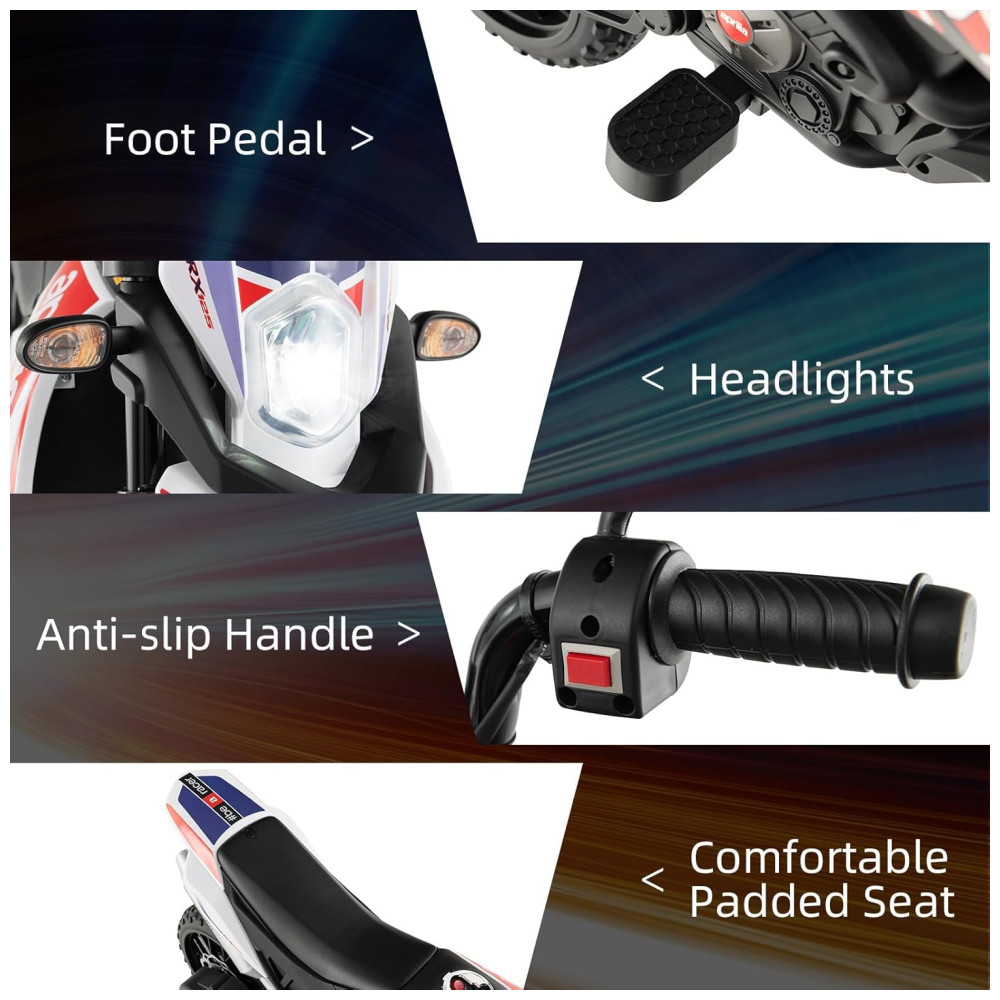 Driver poderoso de 12V Alimentado pela bateria recarregável de 12V, este brinquedo de motocicleta infantil tem 2 velocidades de 3 a 6 km, h e pode durar cerca de 40 a 60 minutos com carga total. Nota O equipamento de proteção deve ser durante a condução.