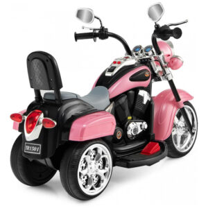 Moto Elétrica Infantil Chopper OLAKIDS Rosa 6V 3 Rodas de Treinamento Farol LED Buzina Suspensão Estrutura Metálica 3 km/h