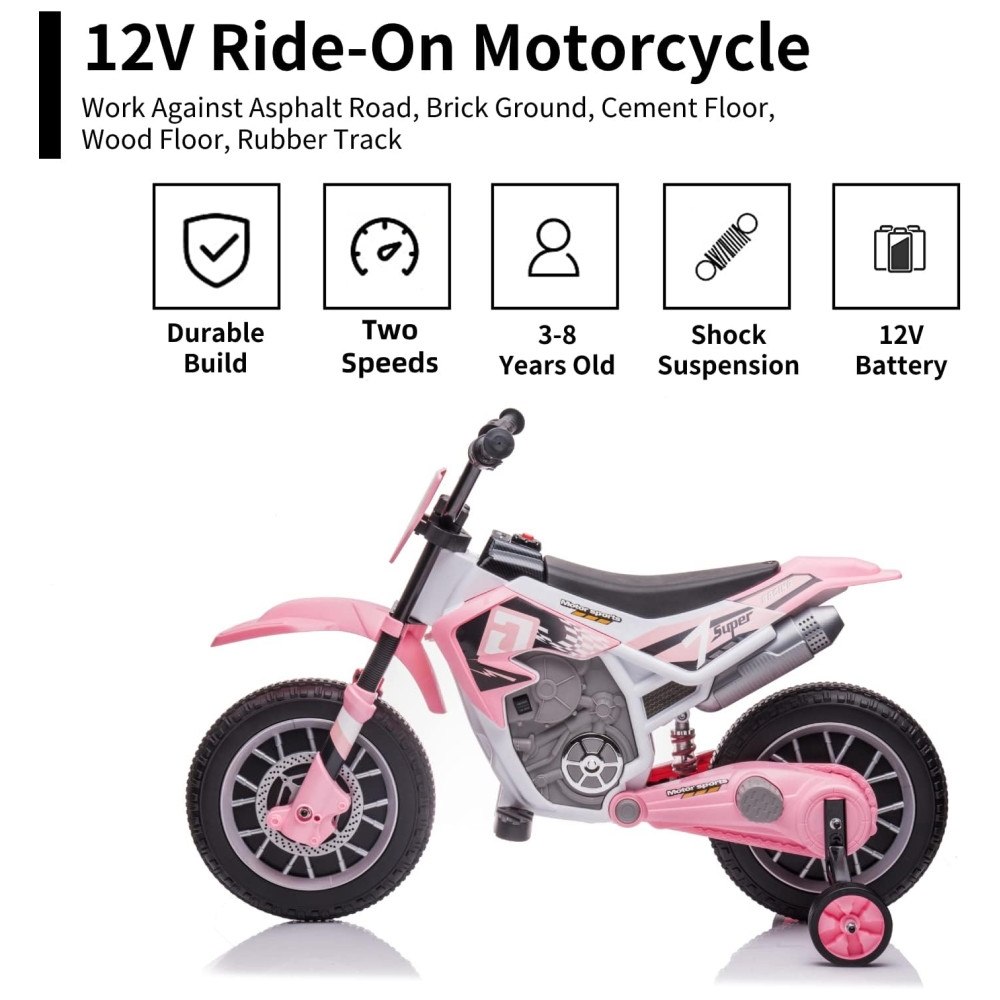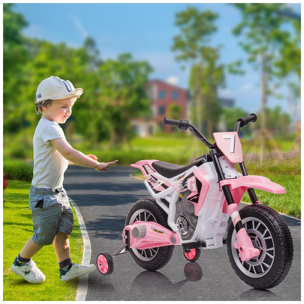 Moto Elétrica Infantil com 2 Velocidades e Rodas de Treinamento 12V Aokoy Rosa