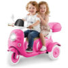 A moto elétrica HEIMILI é ideal para crianças a partir de 3 anos, com design adorável, estrutura reforçada (metal e plástico), três rodas para máxima estabilidade e assento traseiro basculante para transporte de irmãos ou brinquedos. Conta com bateria 12V, painel musical com Bluetooth e MP3, porta-objetos, e pneus antiderrapantes para segurança em pisos internos e externos.