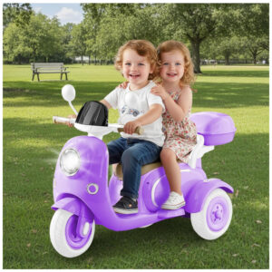 Moto Elétrica Infantil HEIMILI 12V Roxo 3 Rodas 2 Lugares com Bluetooth MP3 Baú e Estabilidade