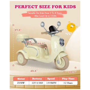 A moto elétrica infantil Letsgoride 12V é ideal para meninos e meninas de 3 a 8 anos, com design scooter de 3 rodas para máxima estabilidade e bate-volta seguro. Possui dois motores de 50W, permitindo passeios internos e externos, com autonomia de até 1 hora por carga. O assento traseiro basculante suporta até 60 kg, ideal para transportar irmãozinho ou brinquedos. Dispõe de baú traseiro integrado, farol LED, buzina, pneus antiderrapantes e estrutura reforçada de baixo centro de gravidade, prevenindo tombos. O painel musical multifunção permite conexão Bluetooth, músicas integradas e comandos interativos, além de acabamento colorido vibrante e manoplas ergonômicas.