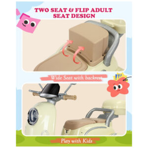 Tipo: Moto elétrica infantil 3 rodas, estilo scooter 2 lugares