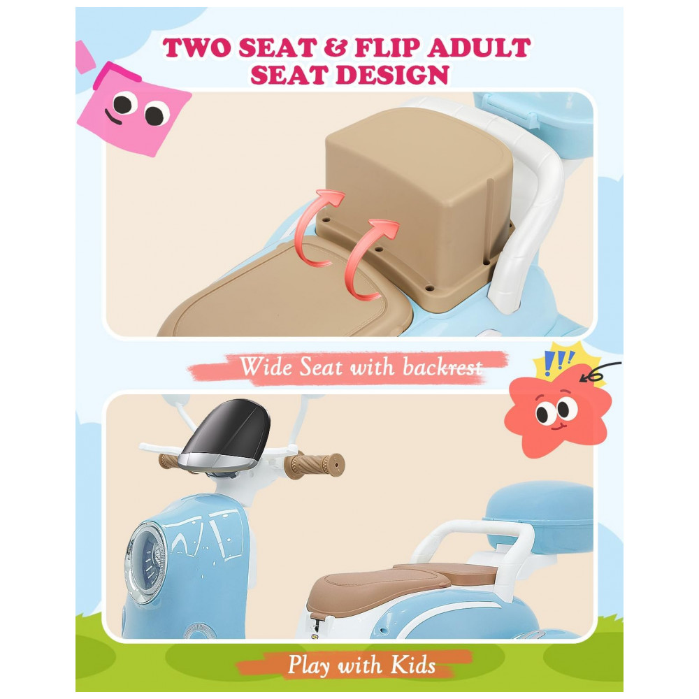 Tipo: Moto elétrica infantil 3 rodas, estilo scooter 2 lugares