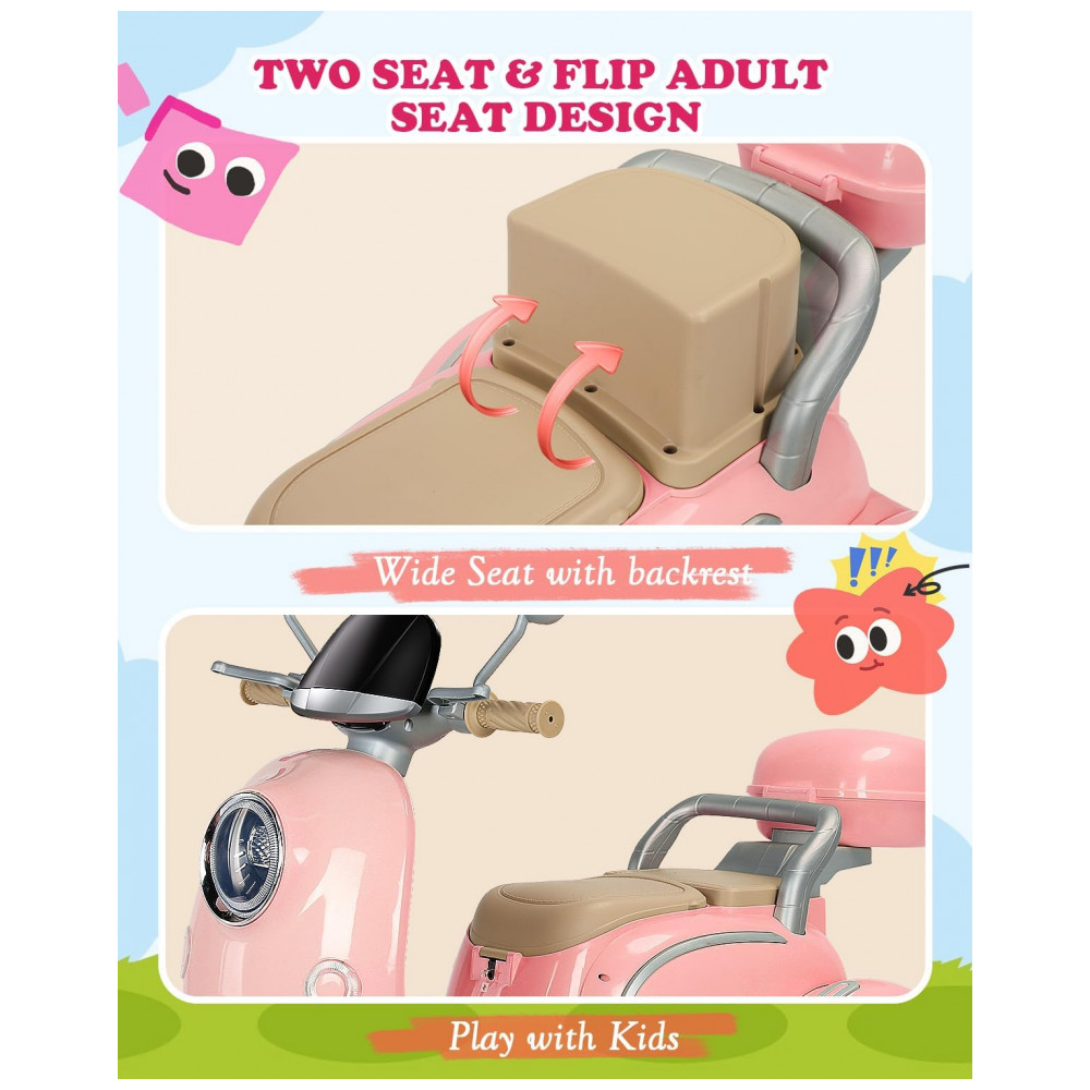 Tipo: Moto elétrica infantil 3 rodas, estilo scooter 2 lugares