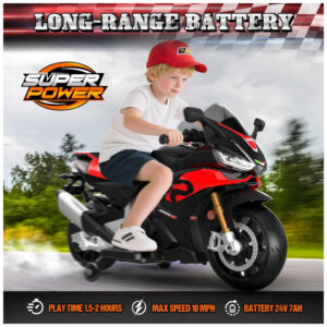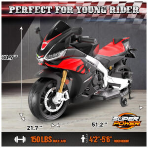 Moto Elétrica Infantil Letsgoride Aprilia RSV4 24V Vermelha e Preta com Rodinhas de Treinamento Farol Música e USB 200W