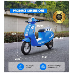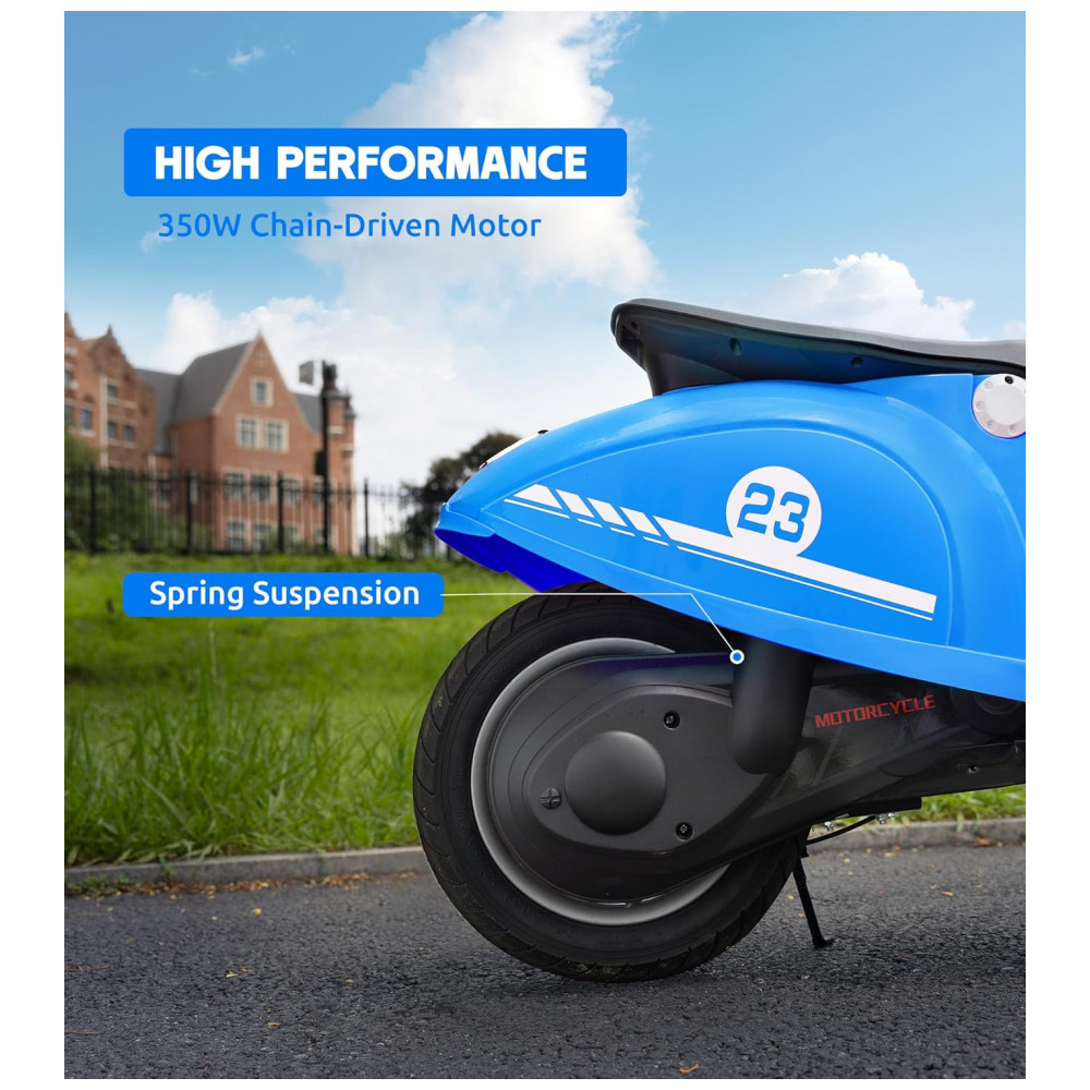 Moto Elétrica Infantil Okay Run Azul 24V 2 Rodas LED Música 3 Velocidades Buzina 8 a 14 Anos
