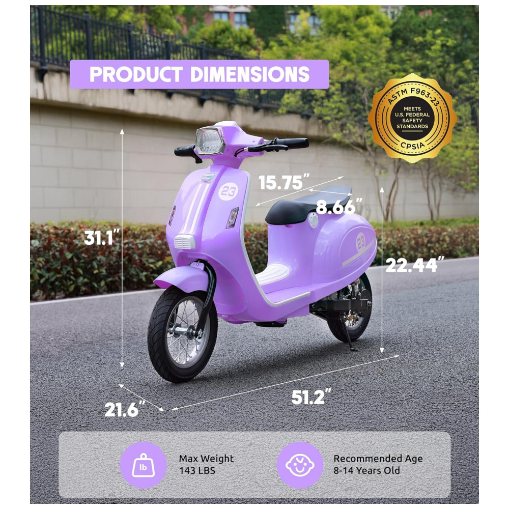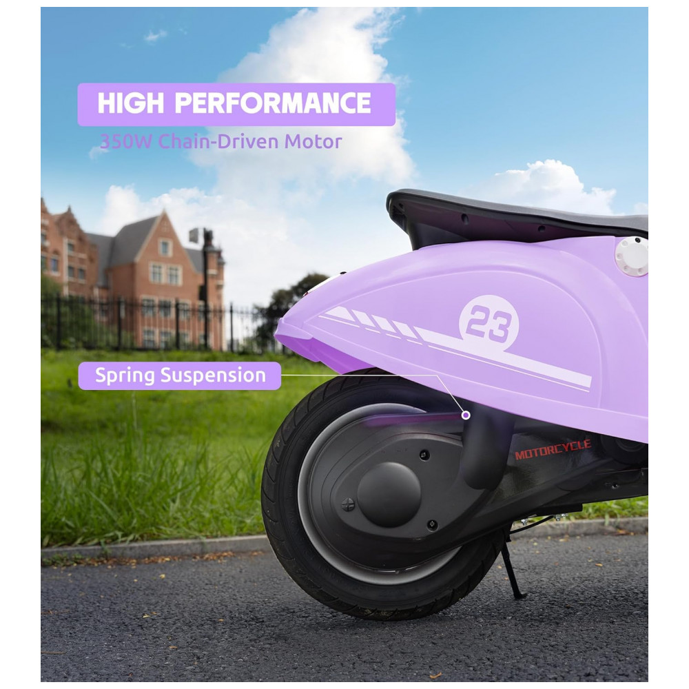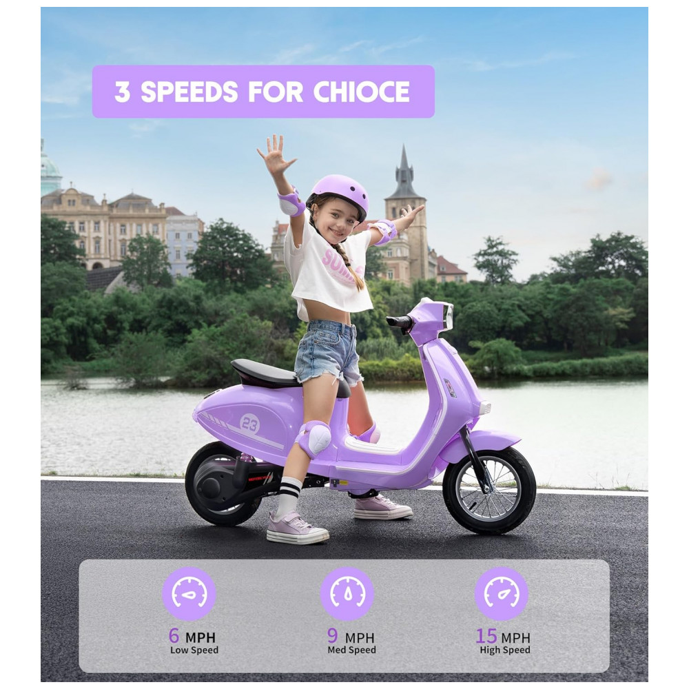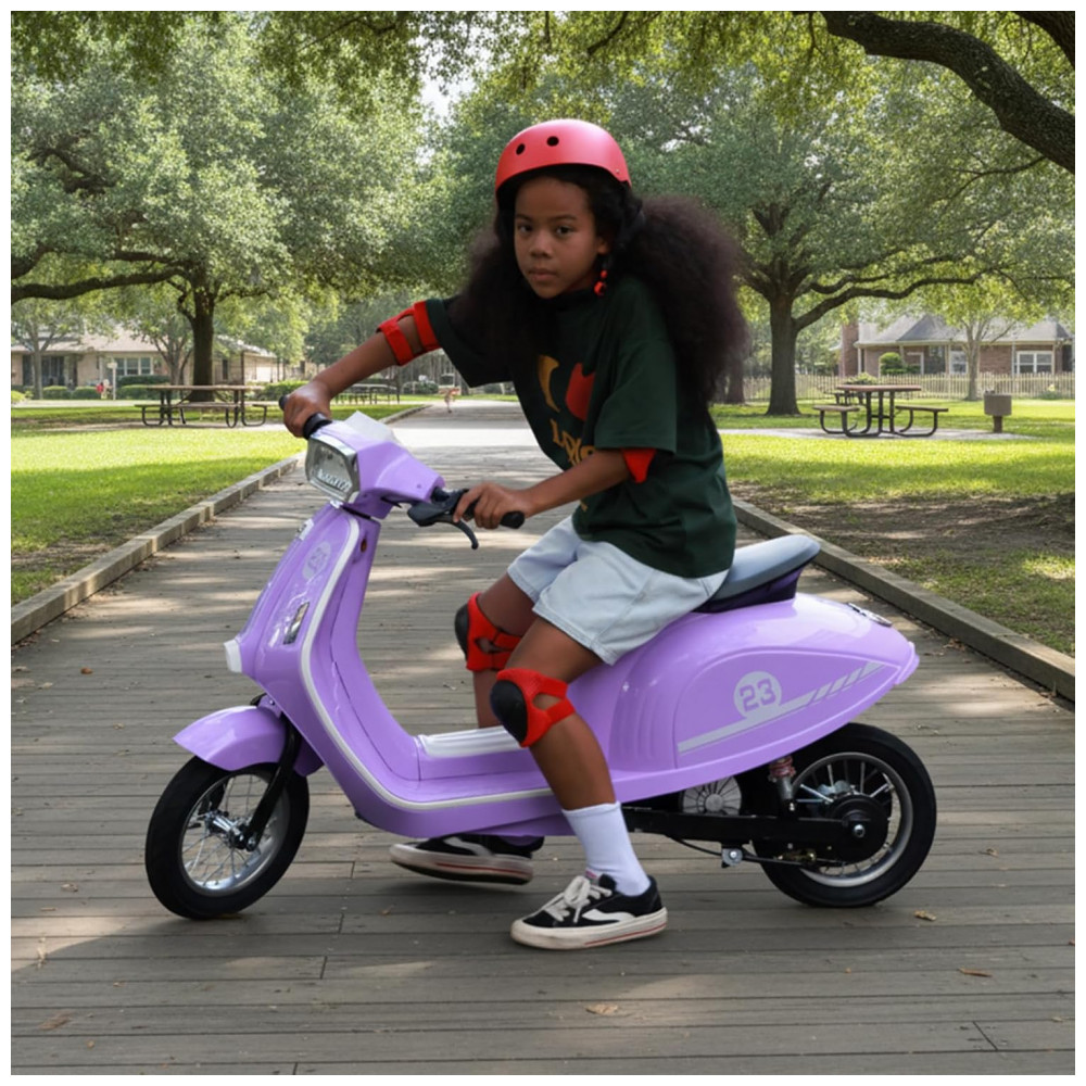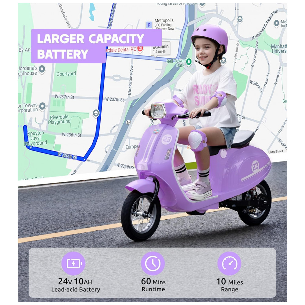 Moto Elétrica Infantil Okay Run Lilás 24V 2 Rodas LED Música 3 Velocidades Buzina 8 a 14 Anos