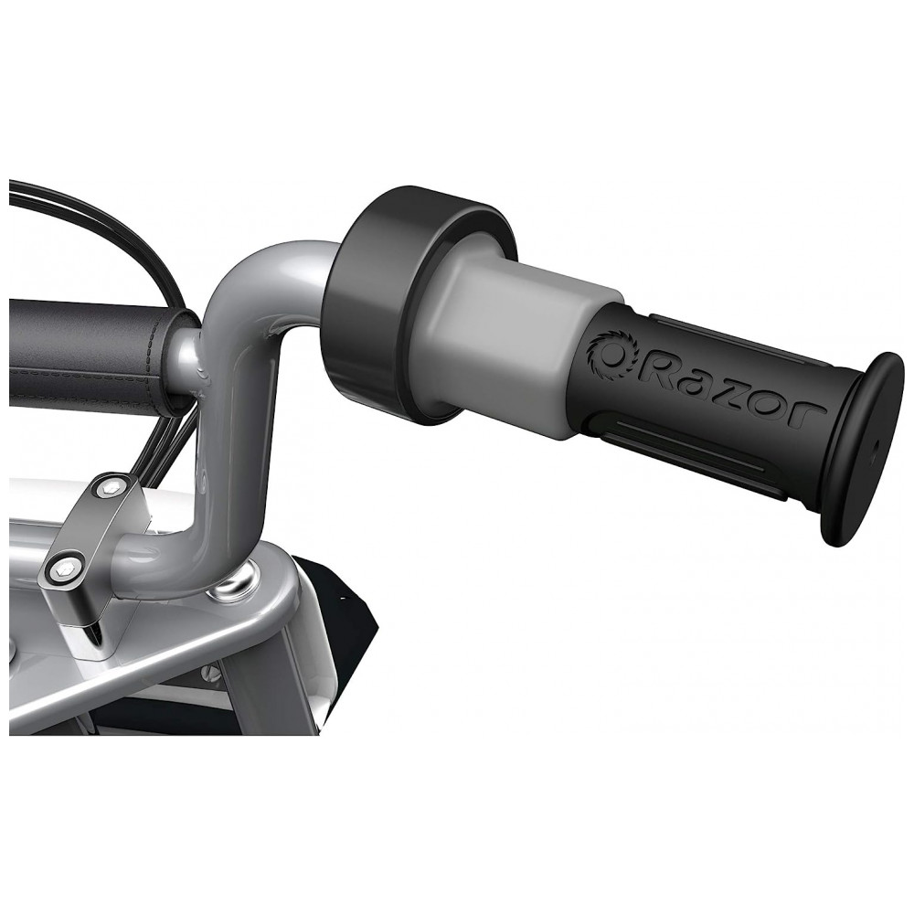 SEGURANÇA E CONFORTO A bicicleta elétrica de sujeira Razor Dirt Rocket MX400 rasou pneus de 12 polegadas com botões pneumáticos que ajudam a suavizar superfícies ásperas para um passeio suave e dobráveis em pinos de metal