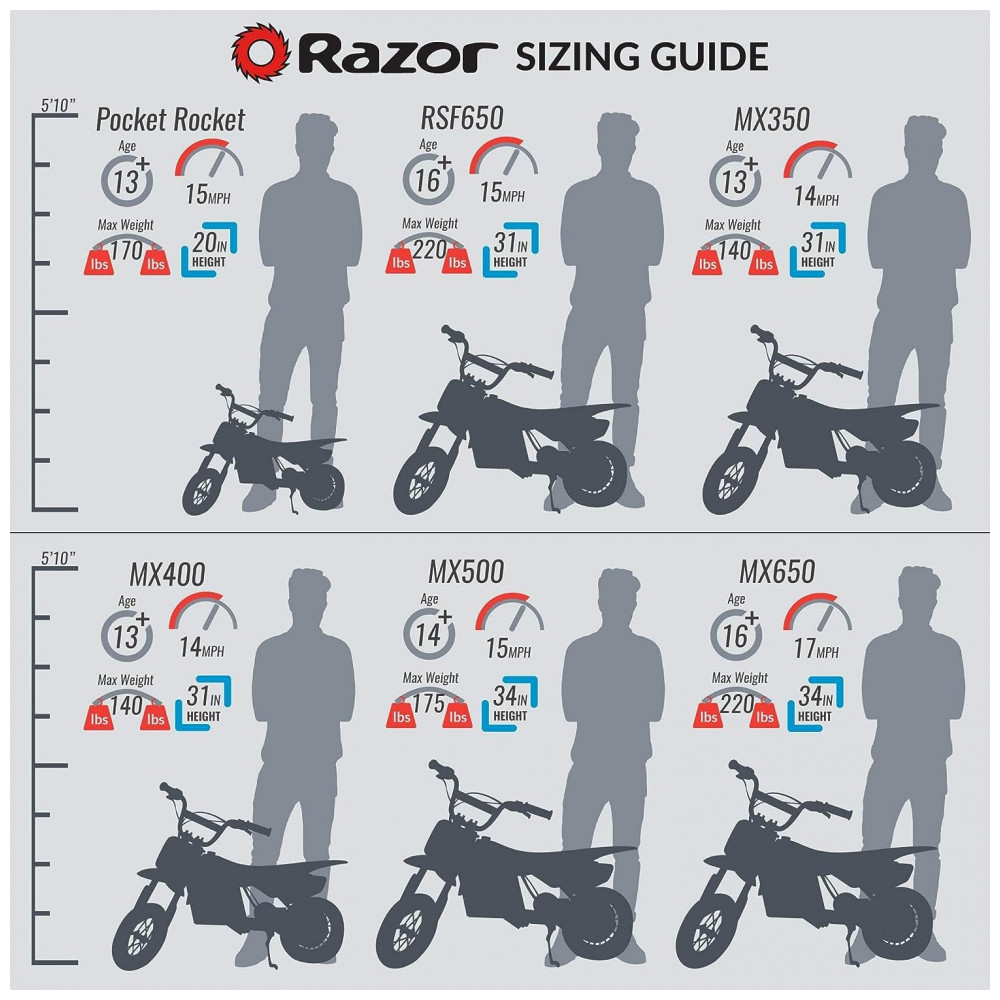 Moto Elétrica Infantil para Trilha a Bateria 24V até 22 km h 250W Idade Rec 13 Anos Razor MX400 Preta