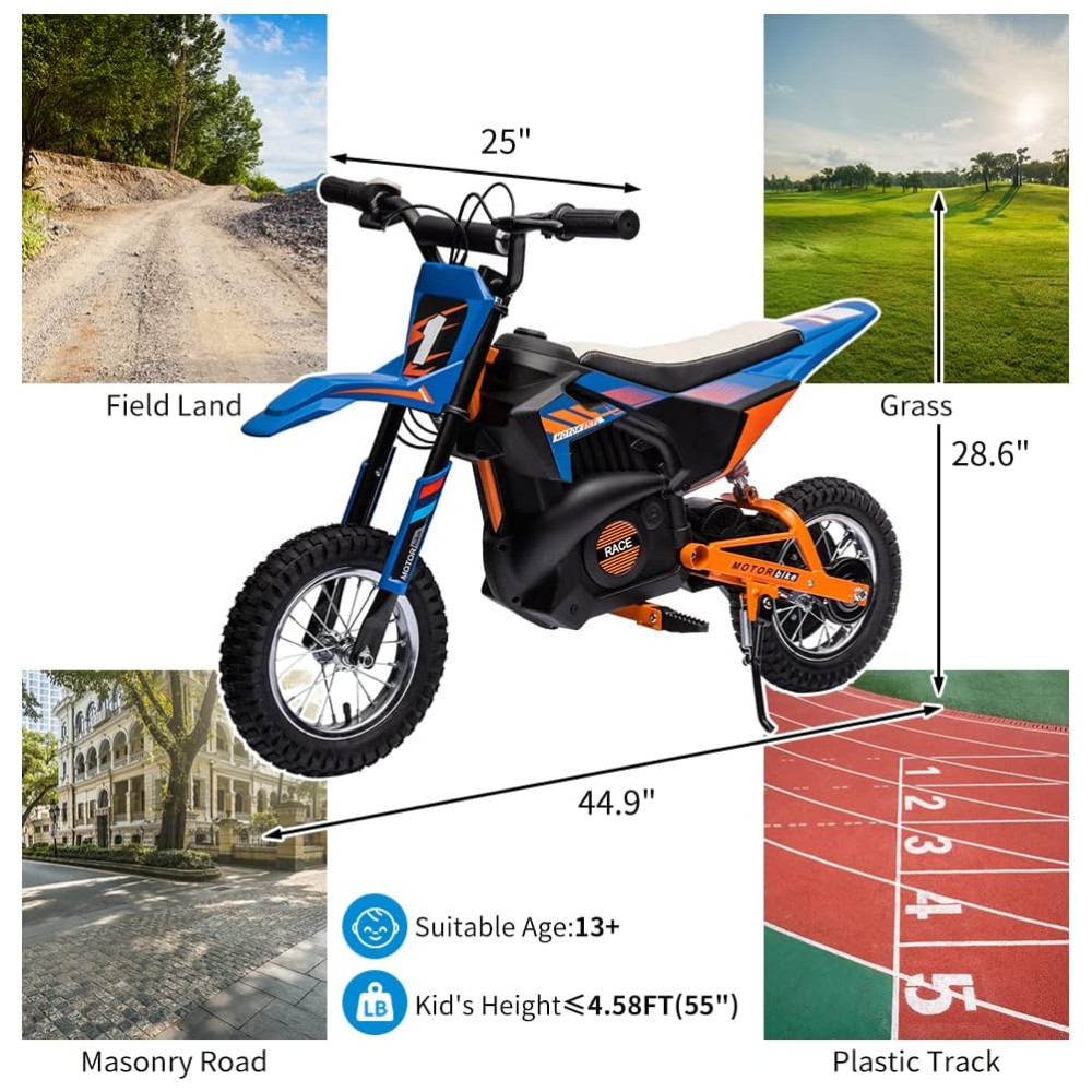Este Motocross Elétrico proporciona uma experiência de condução emocionante e segura para jovens entre 8 e 12 anos. Com um motor escovado de 250W, bateria recarregável e design off road, é a escolha perfeita para explorar terrenos variados.