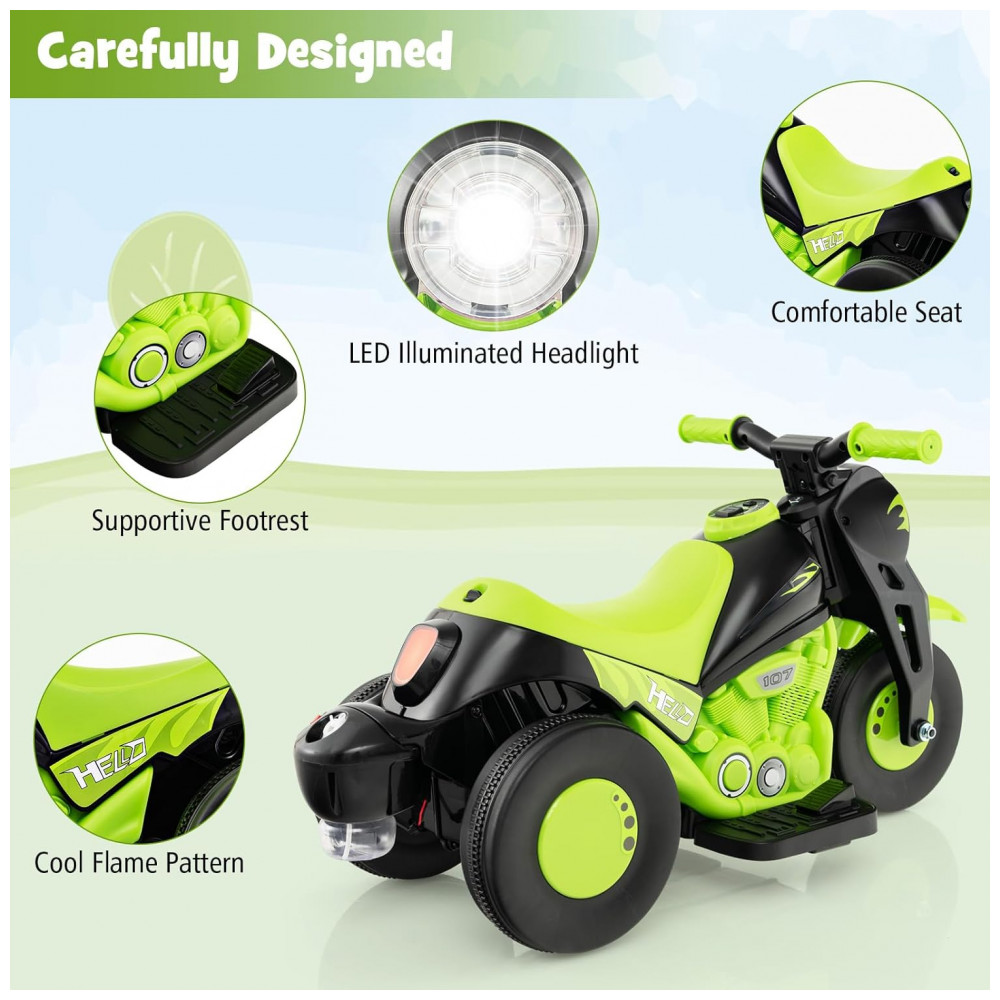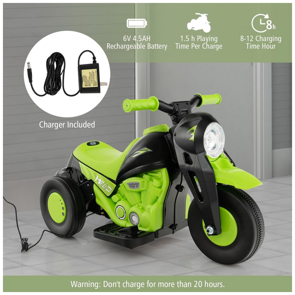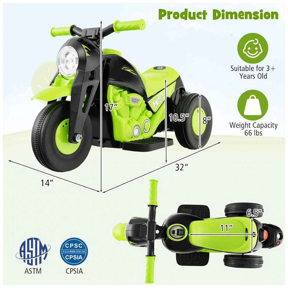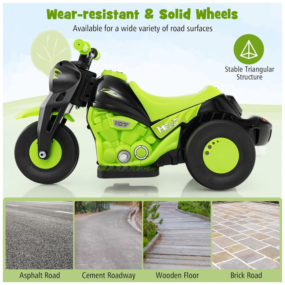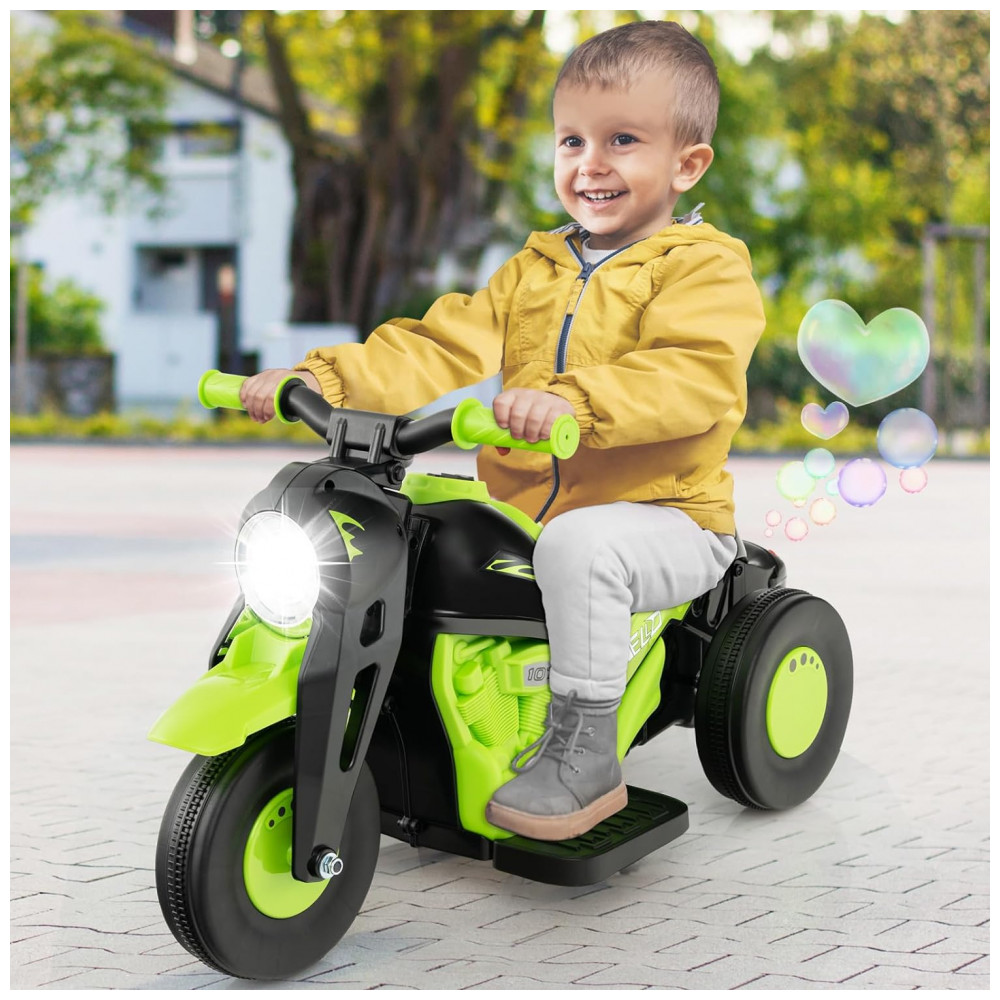Moto Elétrica Triciclo Infantil com Bolhas de Sabão Música e Farol LED 6V Costzon Verde
