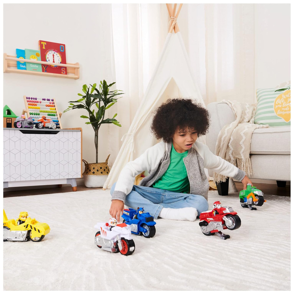 Os veículos Moto Pups Deluxe dão vida às motocicletas PAW Patrols do seriado de sucesso Colete todos eles, cada um vendido separadamente, e use sua imaginação para salvar o dia.