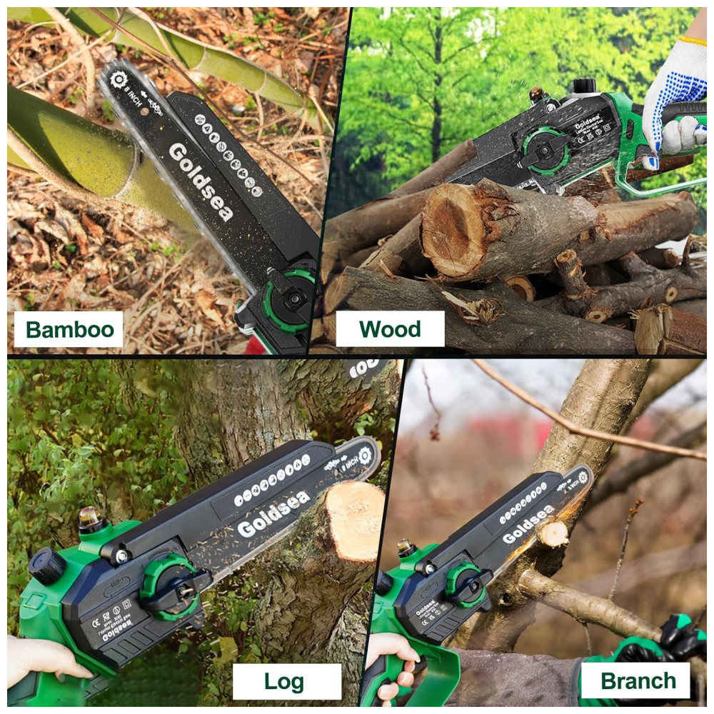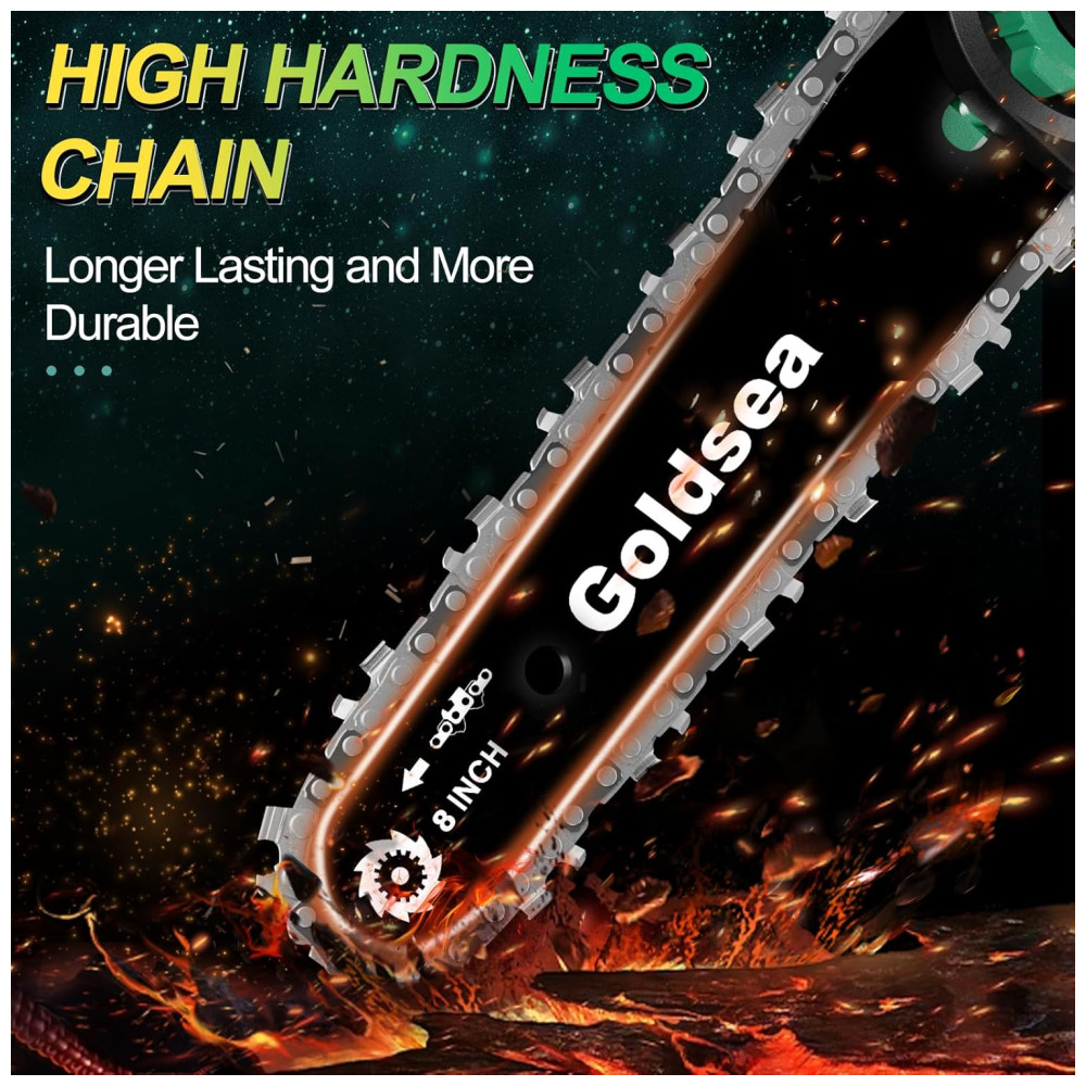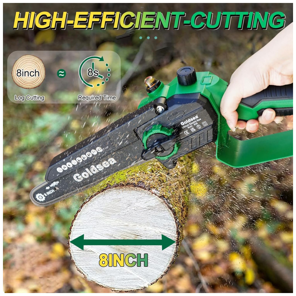 Motossera Elétrica Portátil de 8 Polegadas (2032 cm) Sem Fio e Com 2 Baterias de 4000mAh. Ideal para Trabalhos Leves e Pequenos Cortes. Goldsea