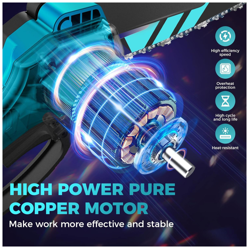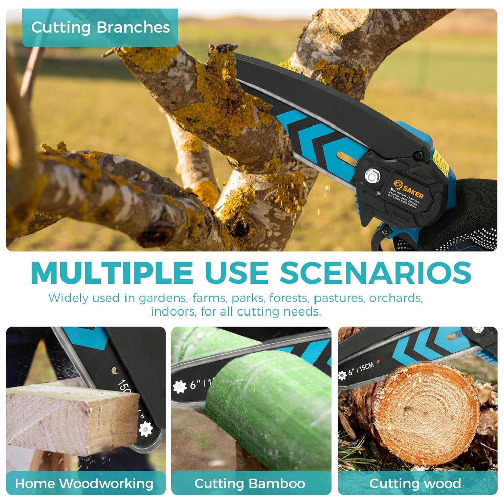 Motossera Elétrica sem Fio para Poda de Galhos com 2 Baterias 20V 1500 mAh e 3 Correntes Extras Saker Azul
