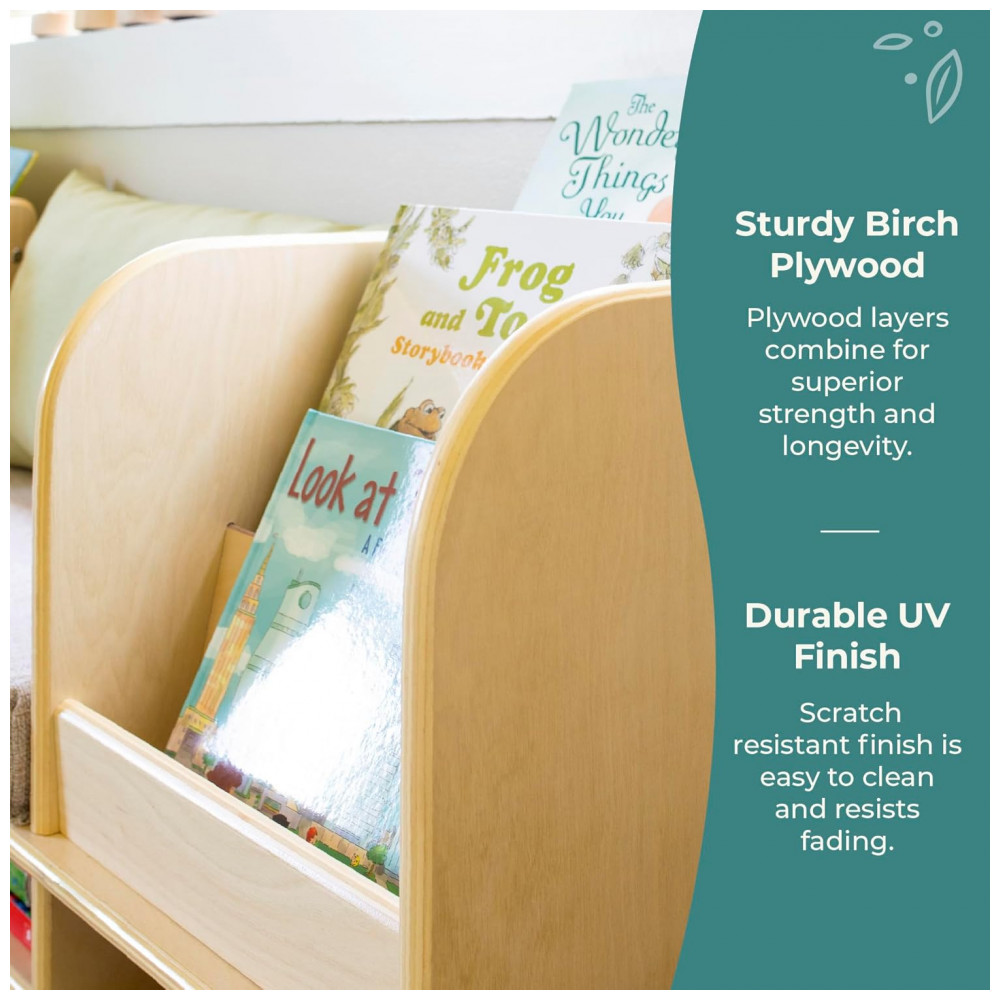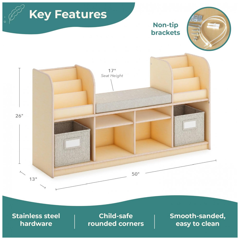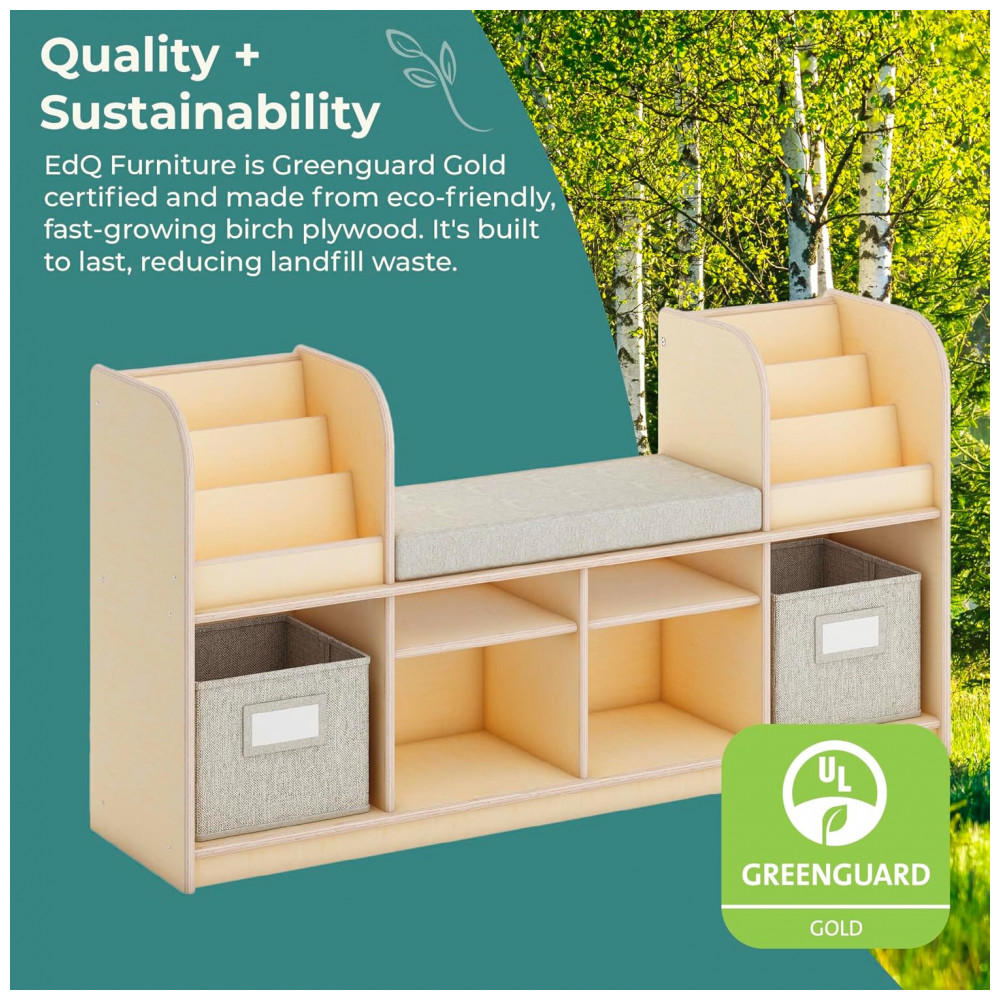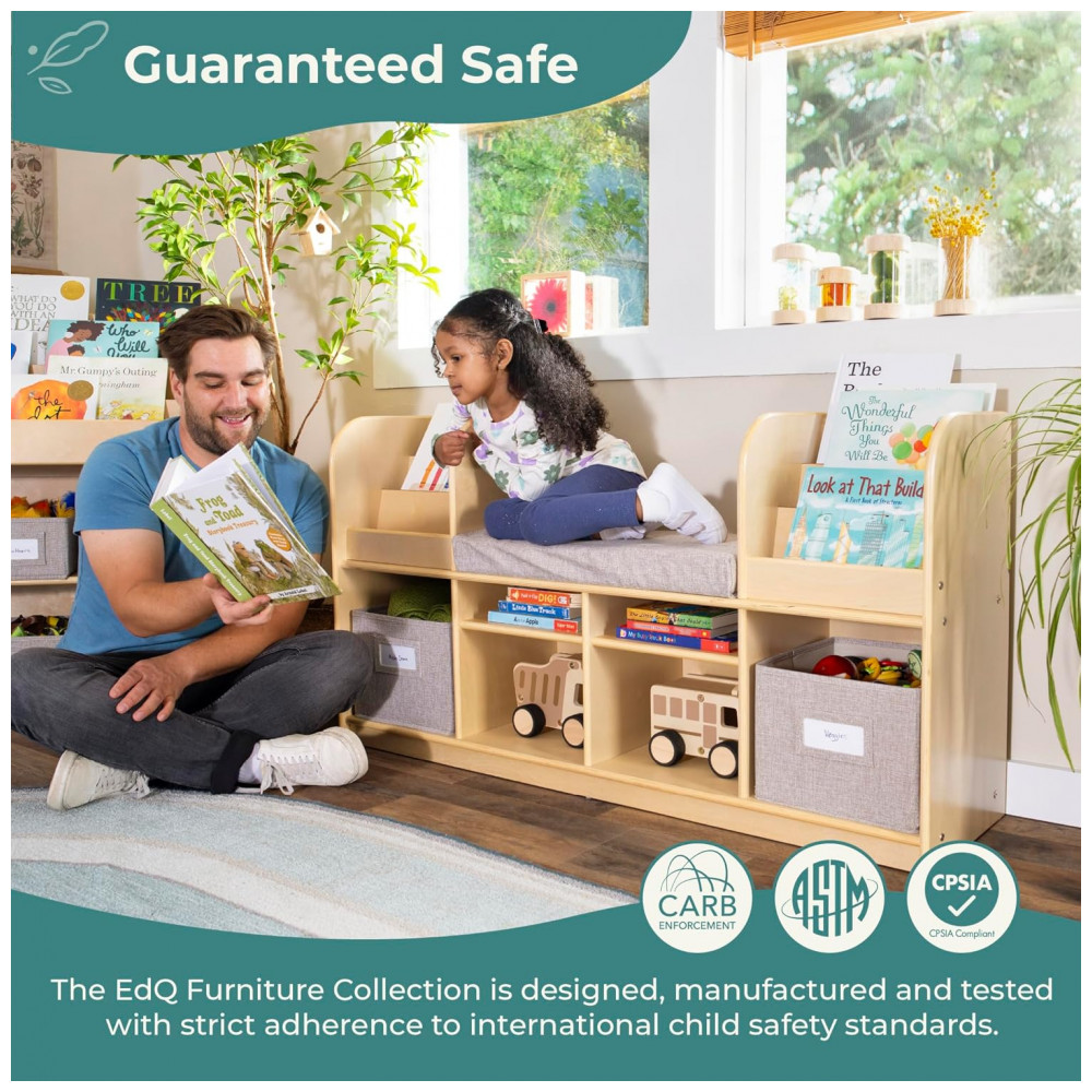 Móvel infantil Guidecraft EdQ Reading Nook natural estante com assento acolchoado organizador multiuso com prateleiras e cestos modelo G80330