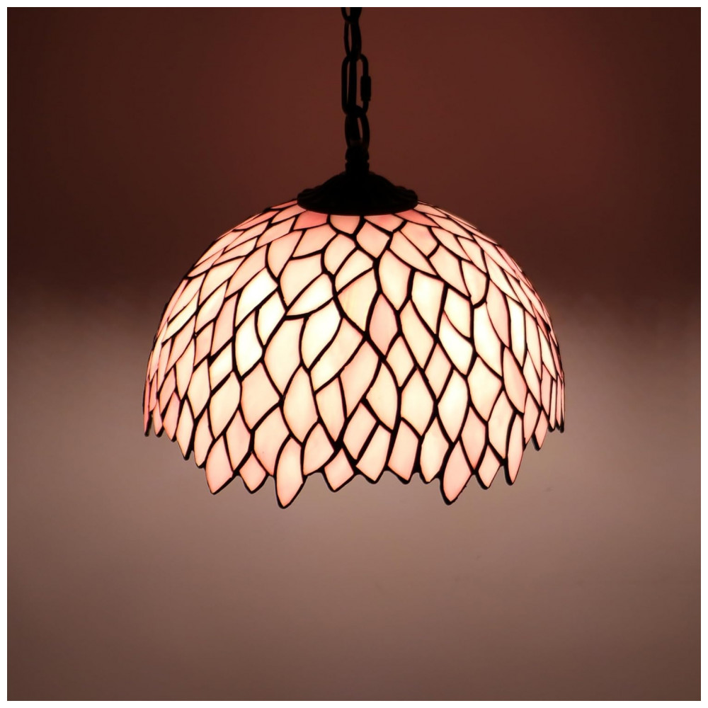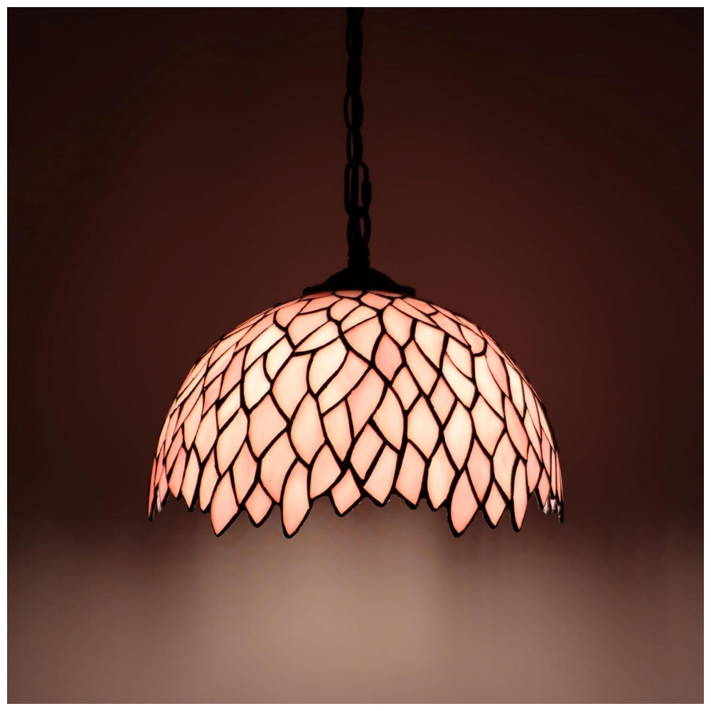 Transforme seu ambiente com a elegância da luminária pendente MQYXH estilo Tiffany, artesanalmente confeccionada com vidro colorido em tons de folha rosa que proporcionam um toque vintage e sofisticado. A cúpula de vidro é feita à mão, unida por bordas de cobre e soldada com estanho, formando padrões únicos e vibrantes que iluminam e decoram qualquer espaço com charme e conforto. Medindo aproximadamente 30 cm de largura e altura (12×12 polegadas) e com cabo de 470 cm (180 polegadas), esta luminária permite uma instalação flexível para diferentes ambientes internos, como salas de estar, salas de jantar, quartos, escritórios, varandas e muito mais.
