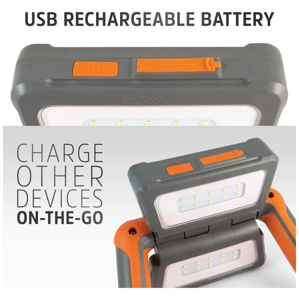 Energizer LED com uma bateria de trabalho recarregável, dispositivos de carregamento de lanternas de painel incluídos e uma porta USB.