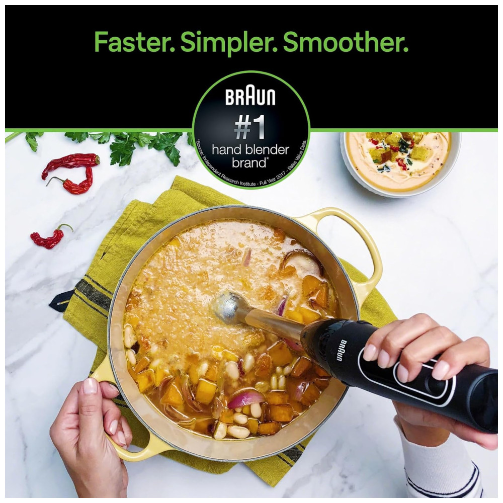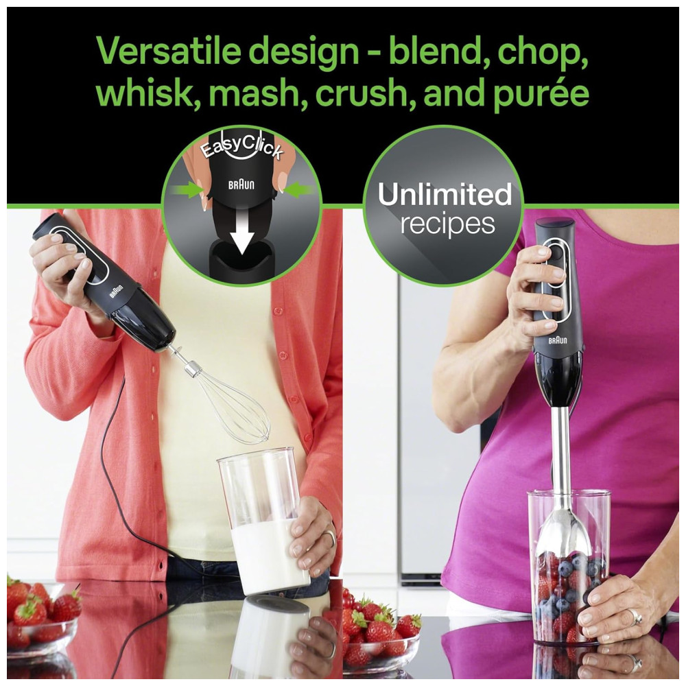 MultiQuick Mixer com 5 Velocidades e Acessórios Aço Inoxidável 300W 110v BRAUN MQ505 Preto
