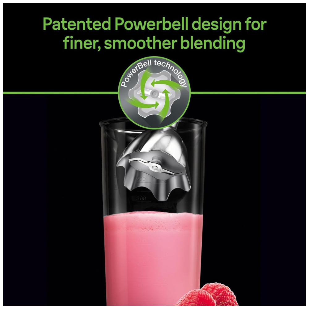 Tecnologia Power Bell Lâminas de aço inoxidável duráveis e eixo de mistura exclusivo em forma de sino para resultados rápidos e mais finos