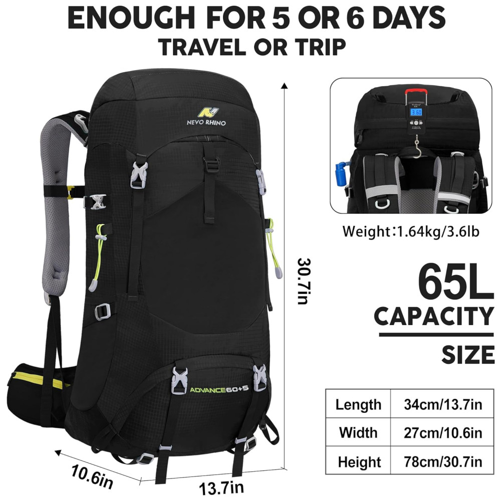 N NEVO RHINO Mochila de Acampamento Camping 60L Impermeável Preta