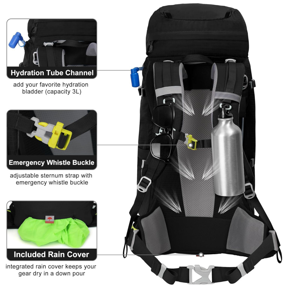 Alta qualidade a mochila ao ar livre é feita de material de nylon leve e durável de alta qualidade que é realmente resistente, ótimos zíperes zíper durável de alta qualidade, artesanato bem costurado, bom material e ótima costura é muito bem construído com costura forte no lugares que você mais precisa, como as alças de ombro e a alça de transporte e outros lugares. Acima de tudo, torne esta bolsa mais luxuosa e durável. Com capa de chuva impermeável.