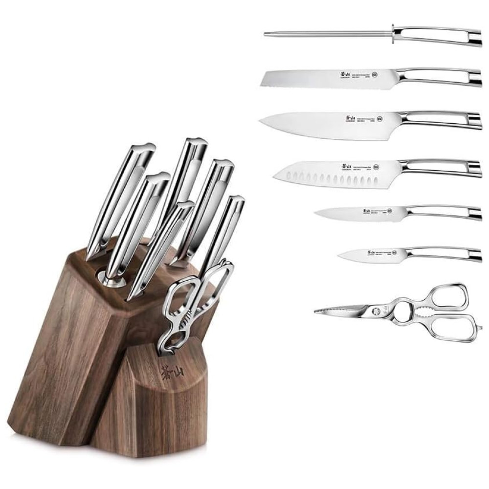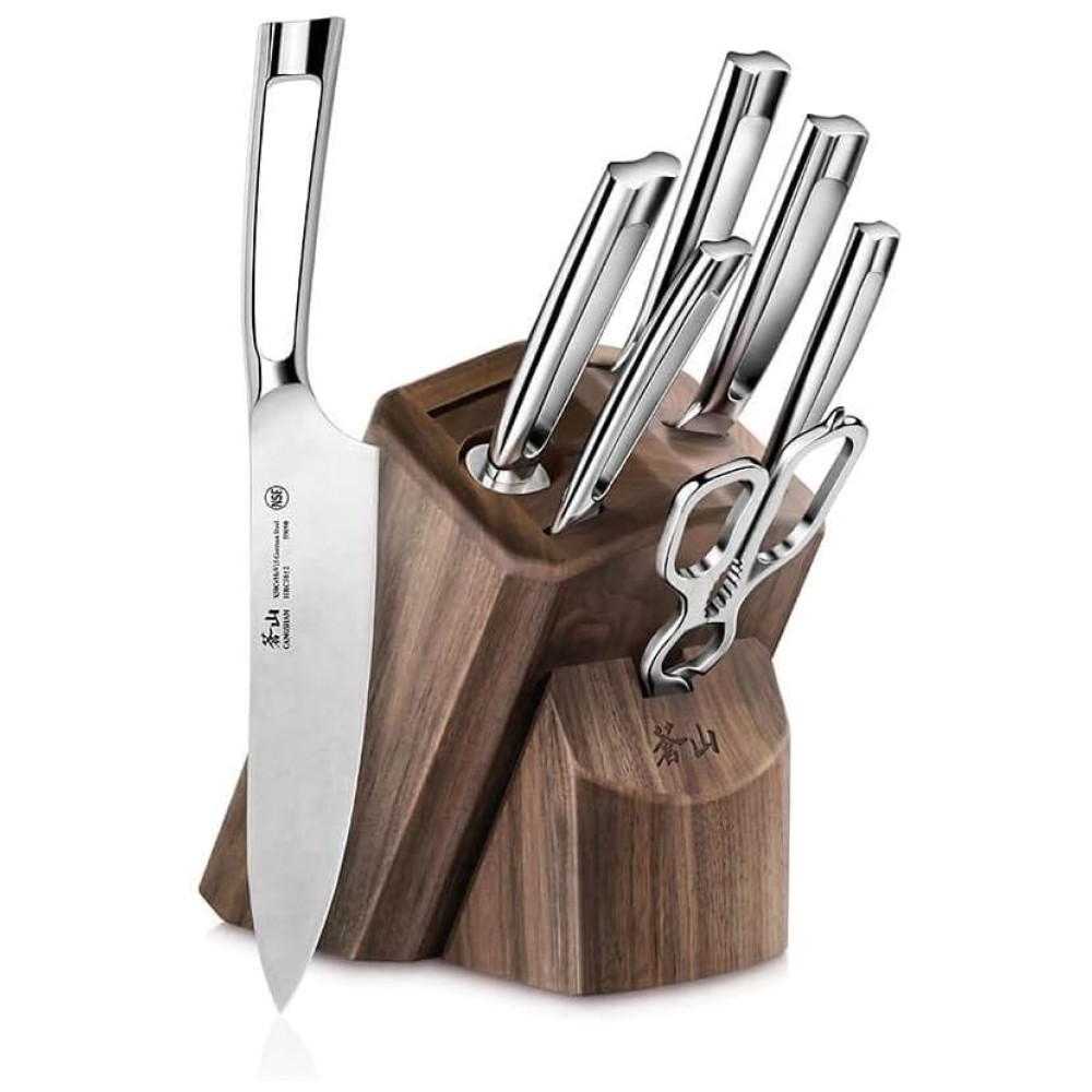 N1 Conjunto de Facas em Aço Inoxidável com Bloco de Bancada 8 Peças CANGSHAN 1022612 Prateado