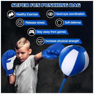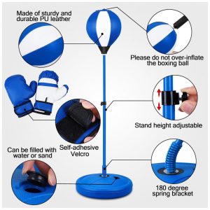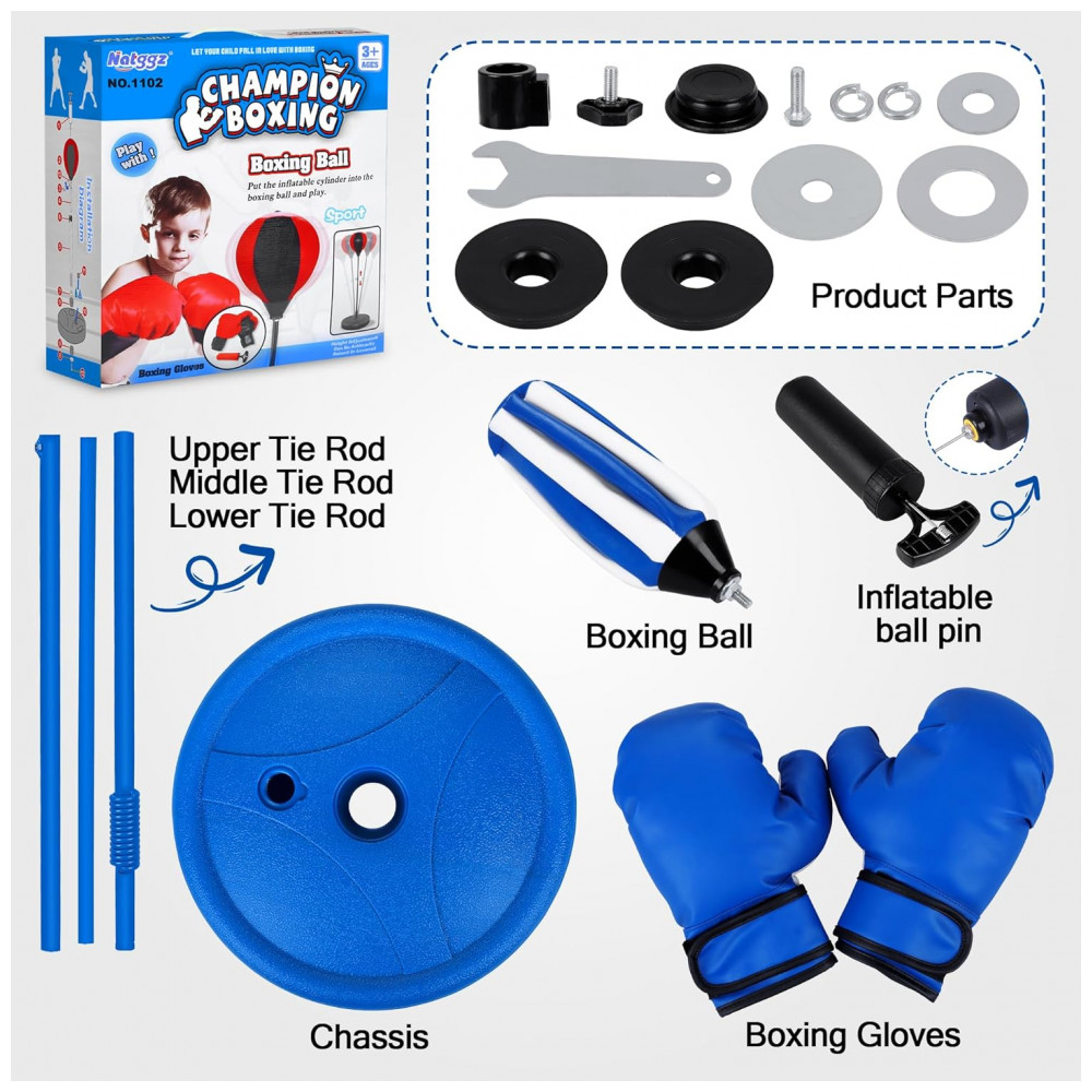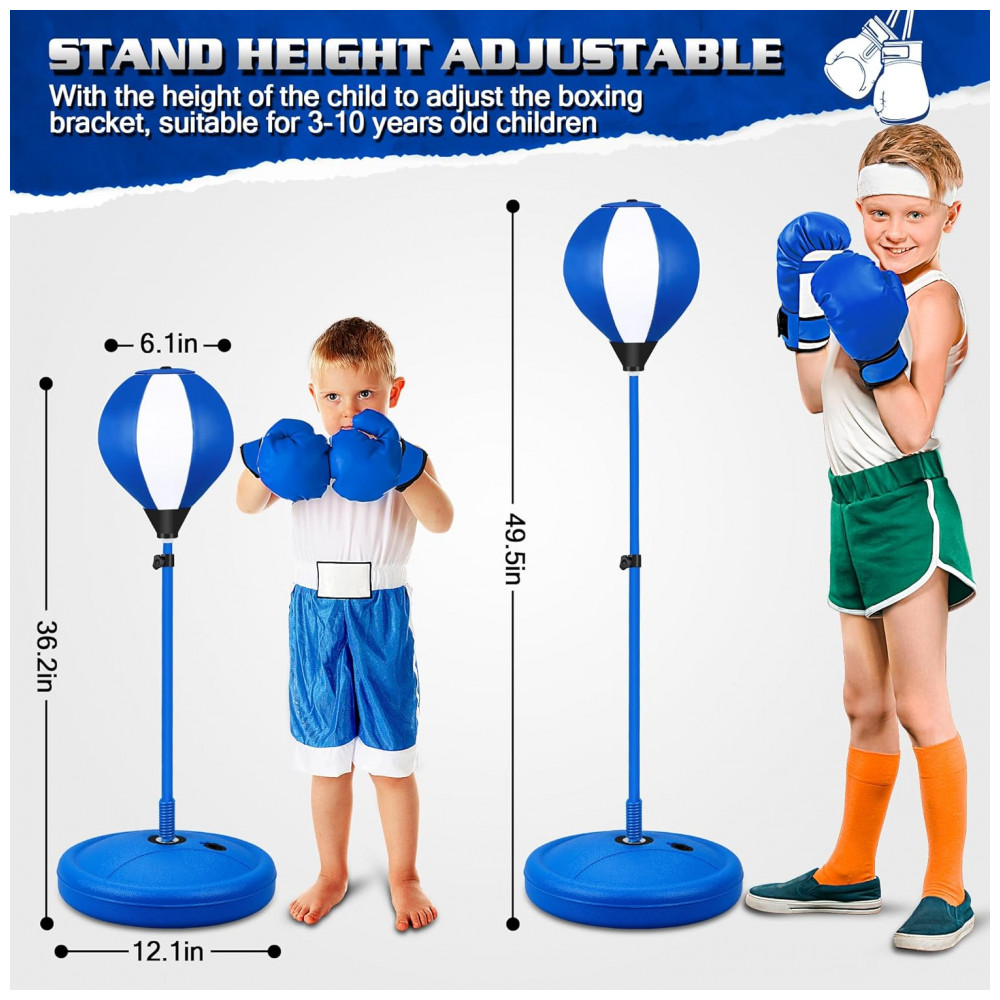 O kit de boxe para crianças NATGGZ é o presente perfeito para aniversários e Natal, ideal para crianças de 3 a 10 anos que adoram se divertir e praticar esportes. Este conjunto completo inclui uma bolsa de pancadas inflável feita em couro sintético resistente, projetada para suportar os golpes das crianças, e que retorna rapidamente à posição original graças à sua base com mola durável. Além disso, acompanha luvas de boxe infantis com proteção para as mãos, garantindo segurança e conforto durante a brincadeira. A altura da bolsa é ajustável, permitindo que o brinquedo cresça junto com seu filho, promovendo horas de entretenimento ativo. O design portátil facilita o uso em ambientes internos e externos, no quintal ou até mesmo em viagens. O boxe infantil é uma excelente atividade para o desenvolvimento físico e mental das crianças, auxiliando no fortalecimento muscular, coordenação motora, aumento da confiança e liberação de energia de forma saudável. O kit também inclui uma bomba de ar inflável, uma chave metálica para ajustes e um manual de instruções. Um brinquedo esportivo envolvente que incentiva hábitos saudáveis e diversão sem fim para meninos e meninas.